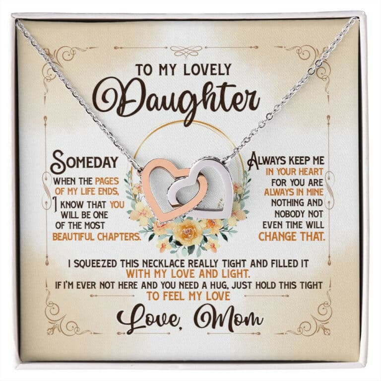 To My Lovely Daughter Message Card Pendant Necklace – Love Knot Sterling Necklace for Daughter