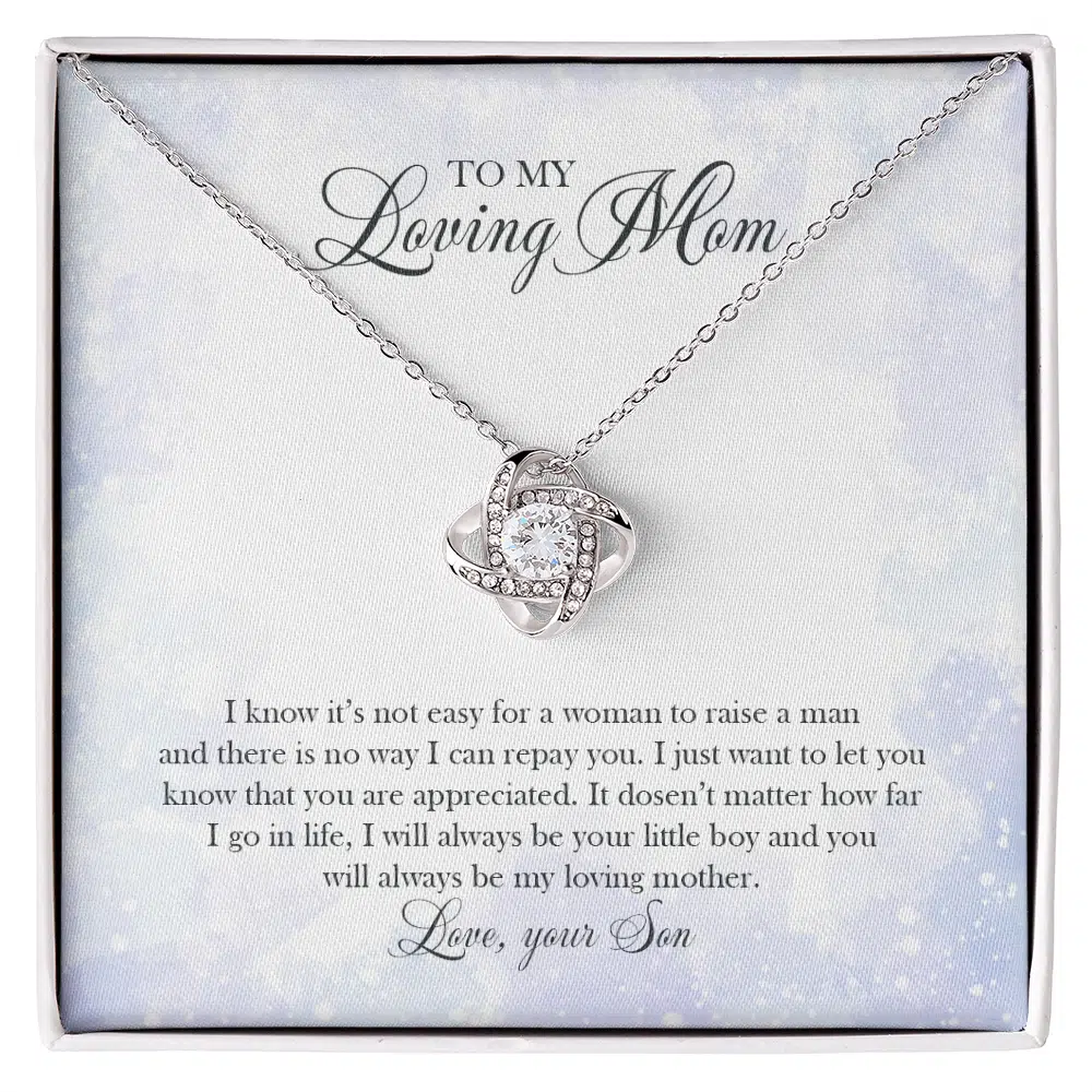 Let’s Shop To My Loving Mom It’s Not Easy For A Woman To Raise A Man Message Card Pendant Necklace – Mom Love Knot Necklace – Mom Alluring Love!