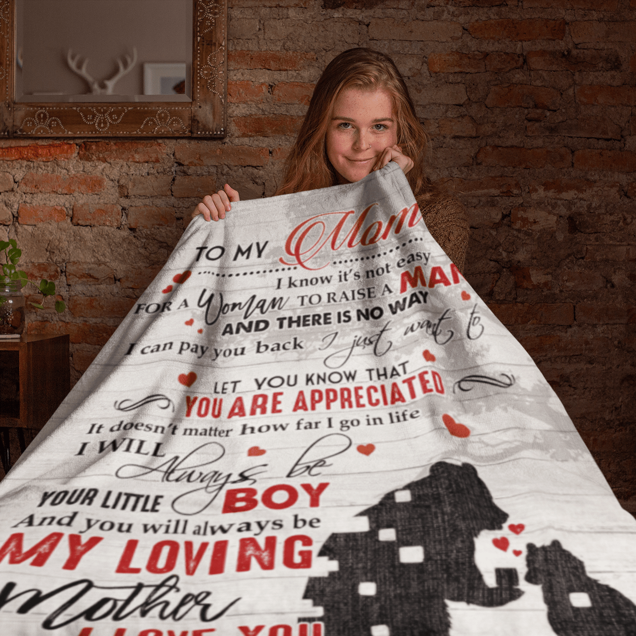 To My Mom I Know It’s Not Easy for A Woman to Raise A Man Bear Son Fleece Blanket – Premium Sherpa Blanket