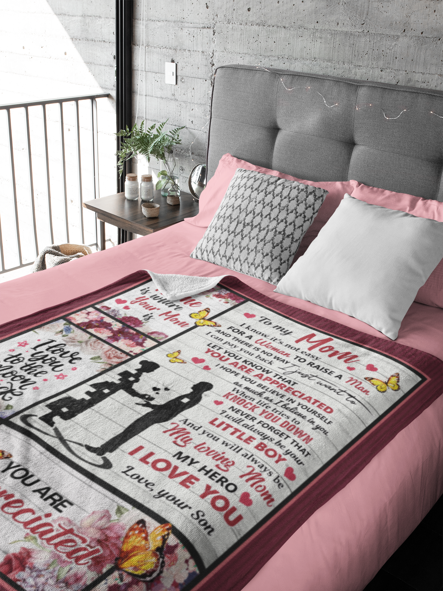 Shop To My Mom I Know It’s Not Easy For A Women To Raise A Man Love Fleece Blanket – Mom Gift From Son.