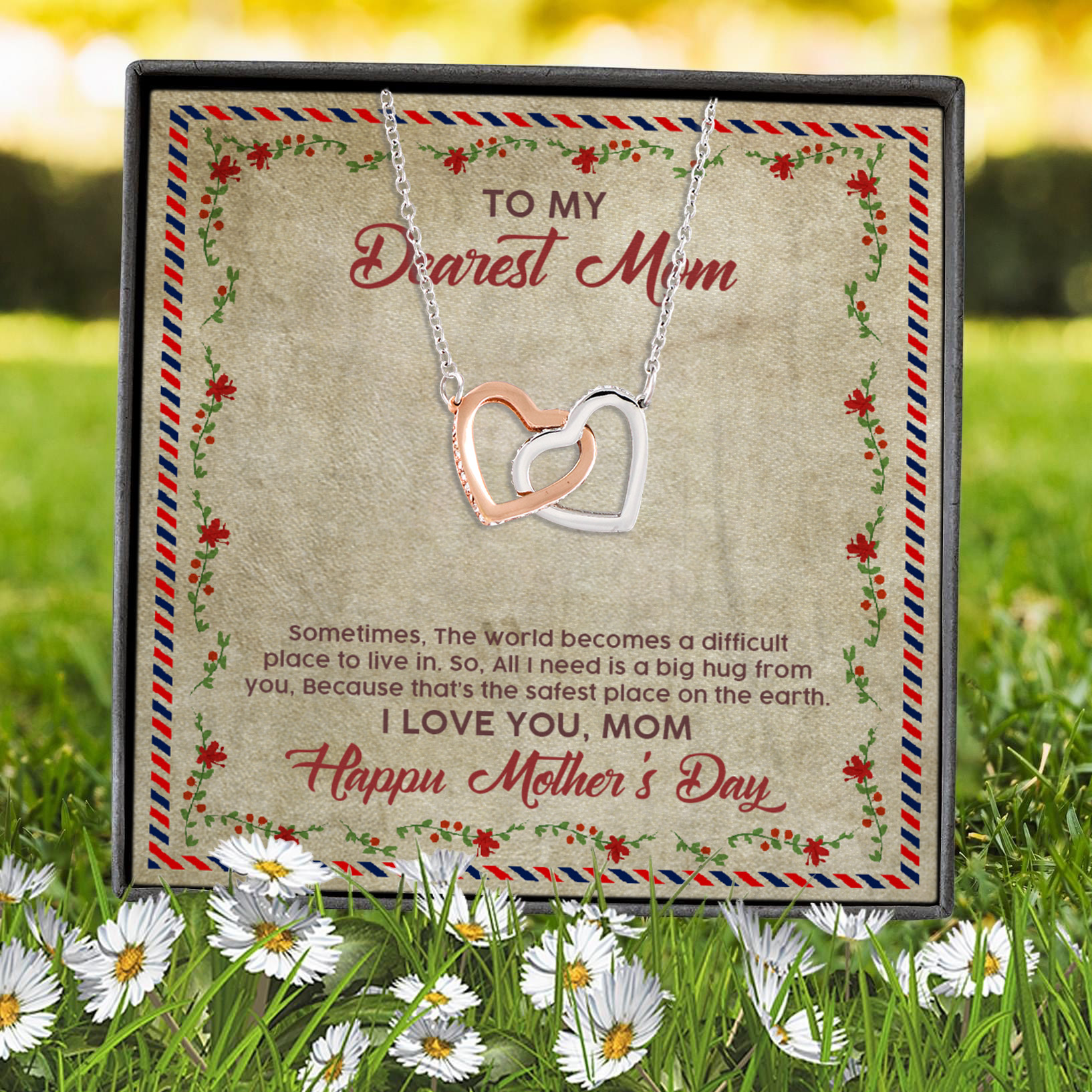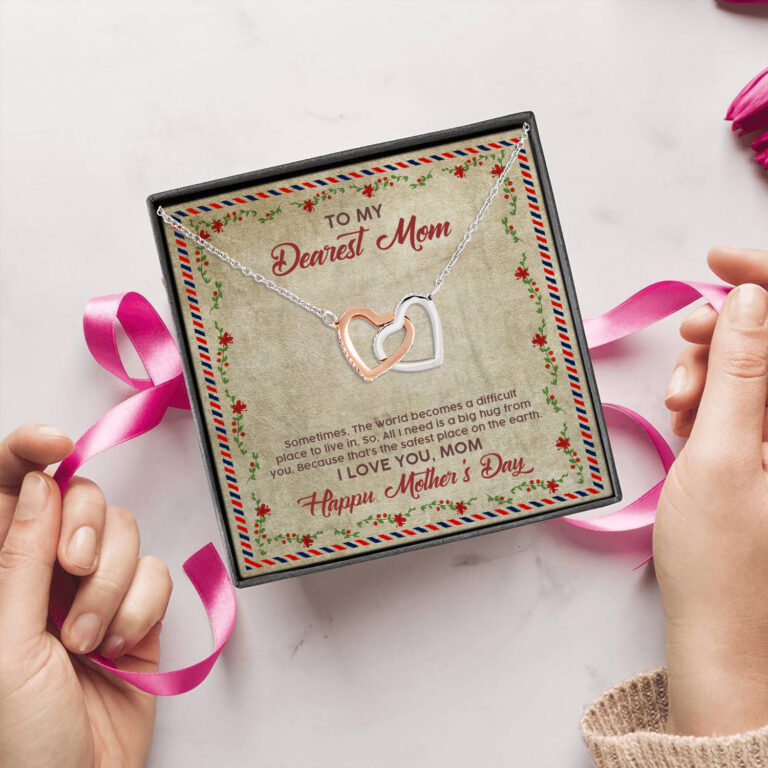 Let’s Shop To My Dearest Mom All I Need Is A Big Hug From You Safest Place On Earth Quotes Interlocking Hearts Necklace!