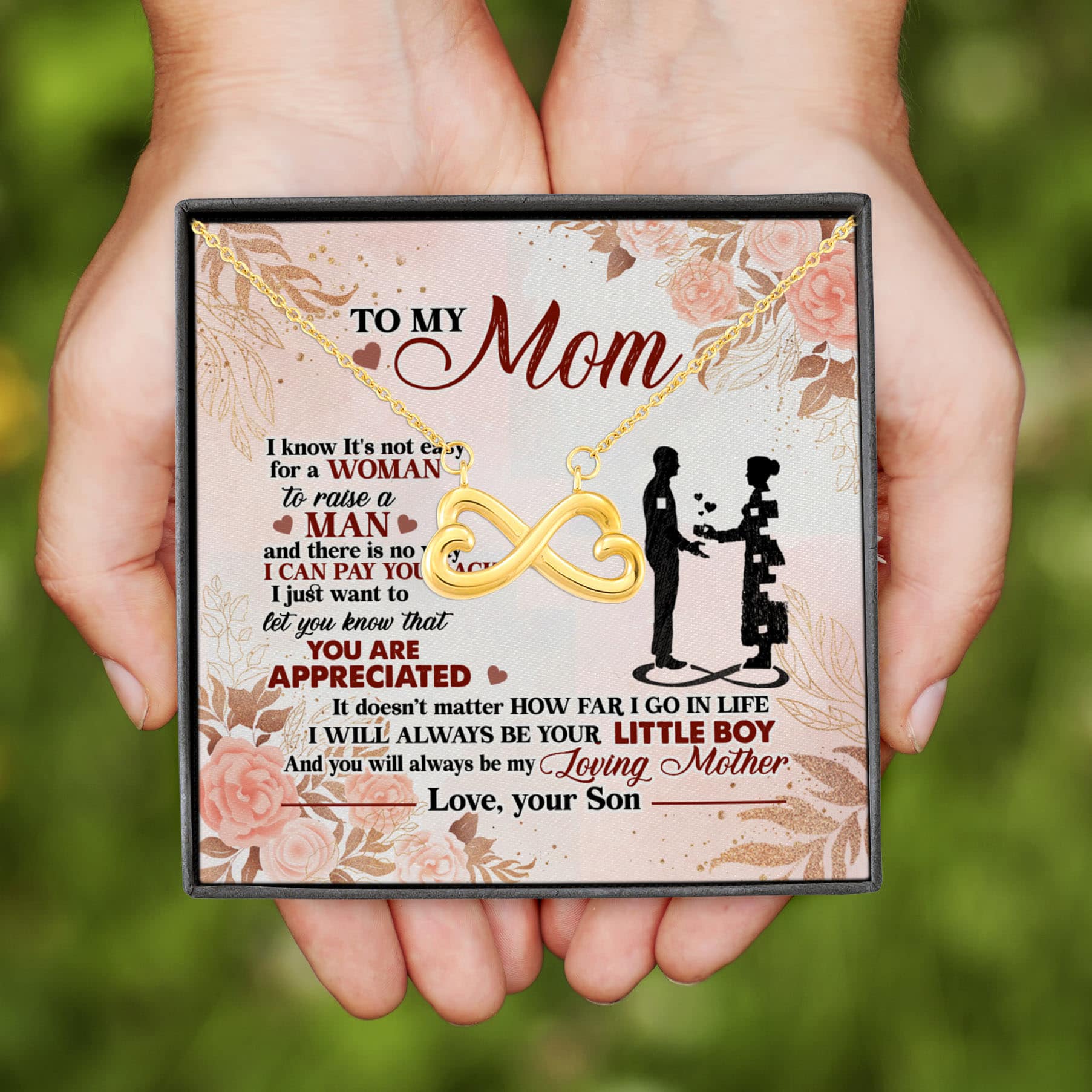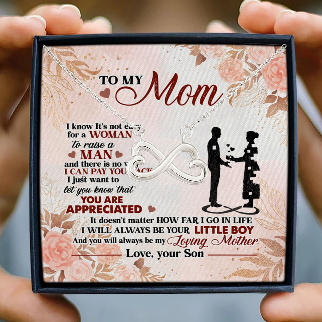 Let’s Shop Son To My Mom I Know It’s Not Easy For A Woman To Raise A Man Mother’s Day Infinity Heart Necklace Gifts!