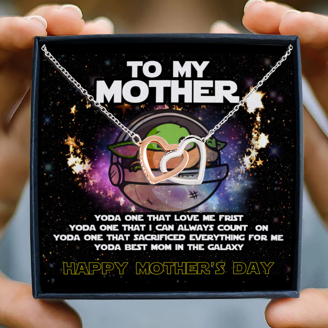 Let’s Shop To My Mother From Baby Yoda Saying Yoda Best Mom In The Galaxy Happy Mother’s Day Interlocking Hearts Necklace!