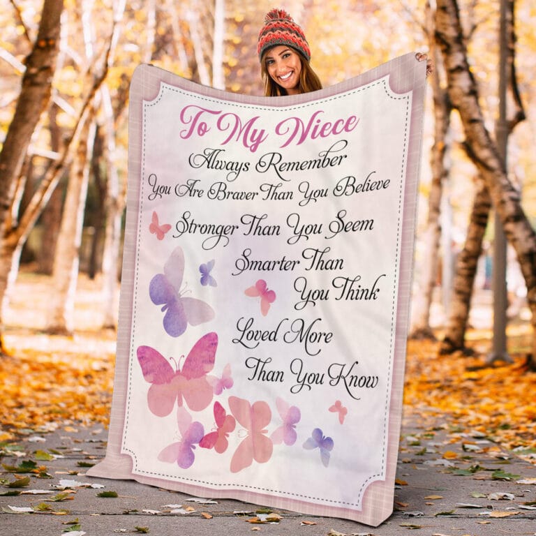 Let’s Shop To My Niece Always Remember You Are Braver than You Believe Stronger than You Seem Smarter than You Think Throw Blanket!