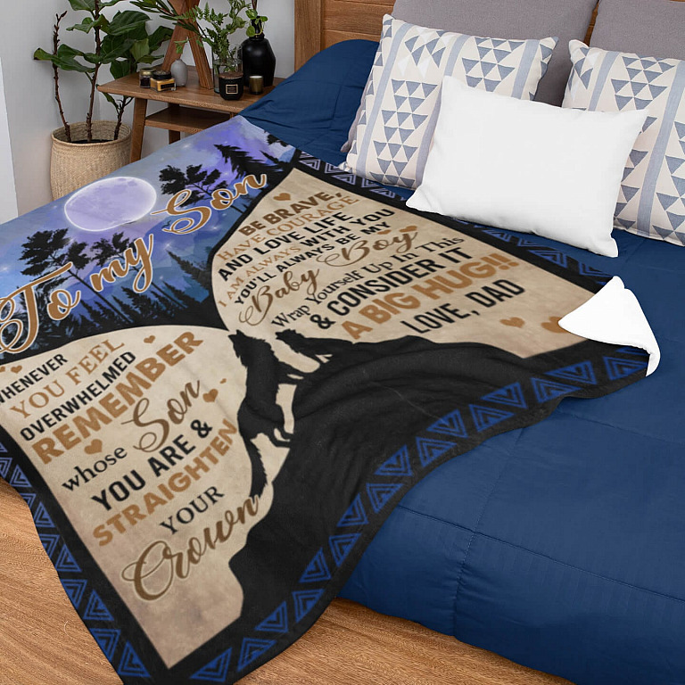 Let’s Shop From Dad To My Son Whenever You Feel Overwhelmed Wolf Fleece Blanket – Premium Sherpa Blanket – Woven Blanket!