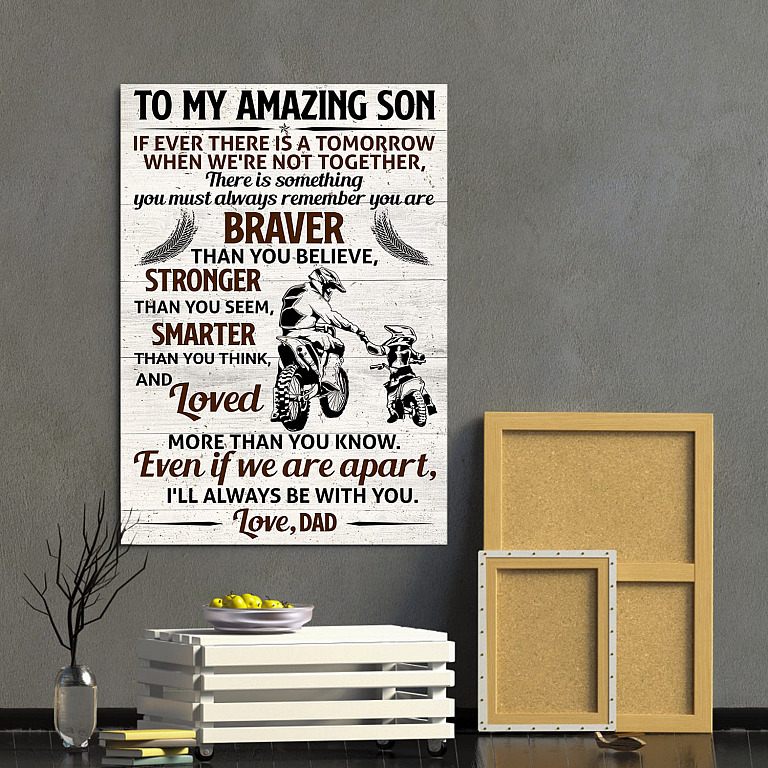 Let’s Shop Dad To Amazing Son If We Are Apart I’ll Always Be With You Dirt Bike Framed Canvas Prints – Unframed Poster!