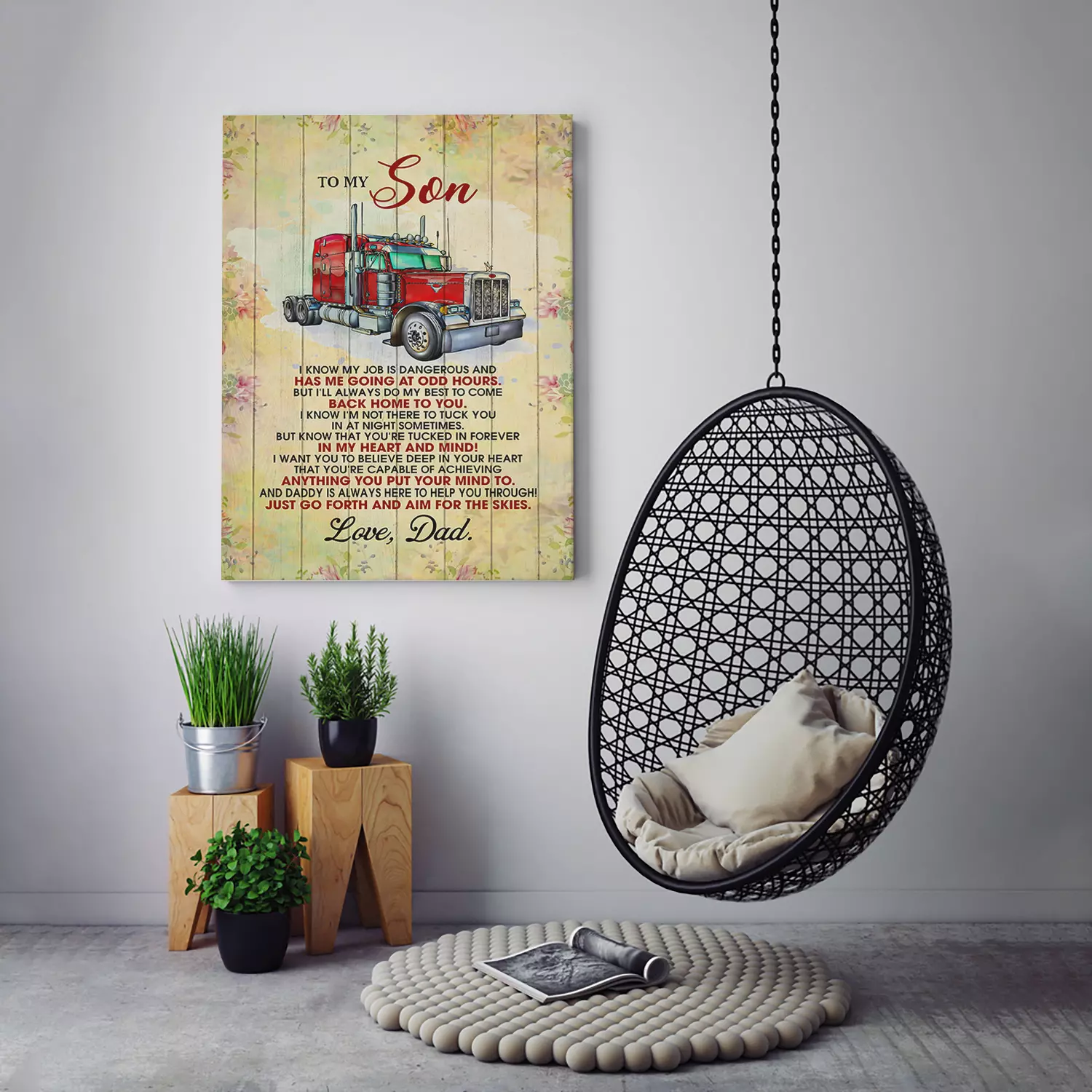 At CubeBik, besides canvases, we also offer tees, hoodies, sweaters, raglans, tanks, wall arts, posters, mugs, blankets, engraved jewelry, personalized necklaces, printed face masks, throw pillows, tote bags, hats, accessories and more on our website, so do not miss our other To My Son from Dad Wall Art, to My Son Wall Art, to My Son Canvas Wall Art, Canvas to My Son, Truck Driver Wall Art, Truck Driver Poster, Truck Driver Canvas Wall Art related merchandise. Moreover, all the products are made-to-order and one of a kind custom designs you can’t get elsewhere in normal stores. Let’s discover CubeBik.com now and find your favorite personalized items. We can’t wait to surprise and build beautiful memories with you and your loved ones.