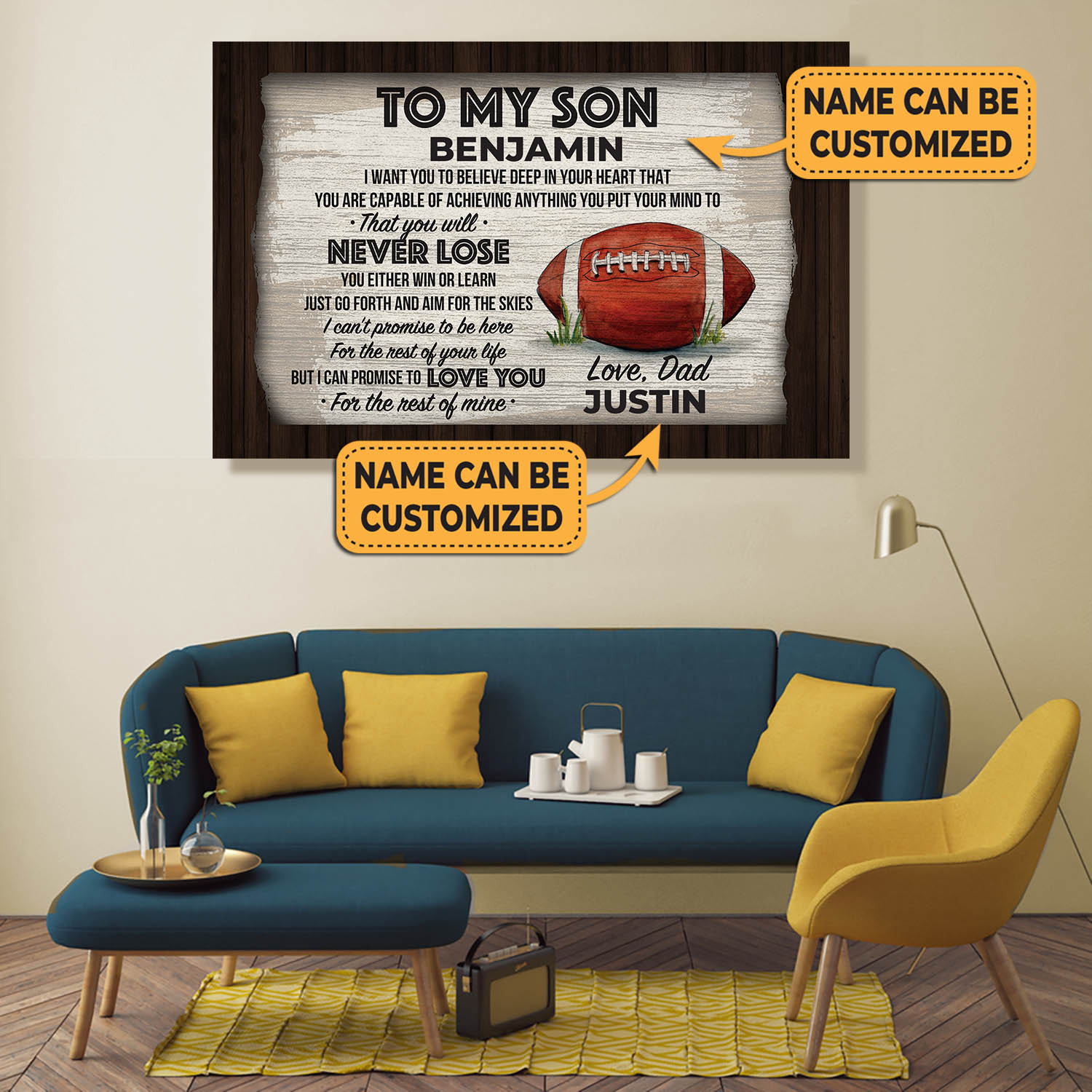 Let’s Shop Personalized Football From Dad To My Son I Want You To Believe Deep In Your Heart Canvas Prints – Unframed Poster!