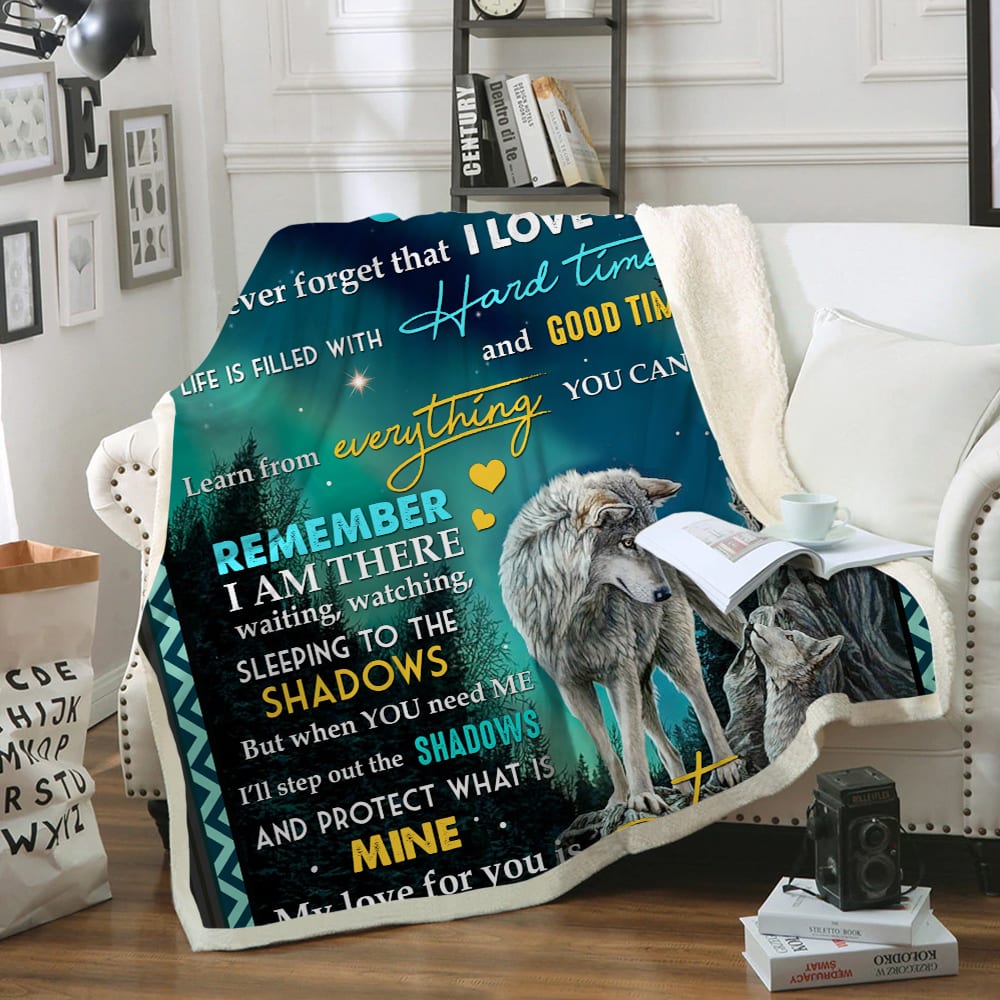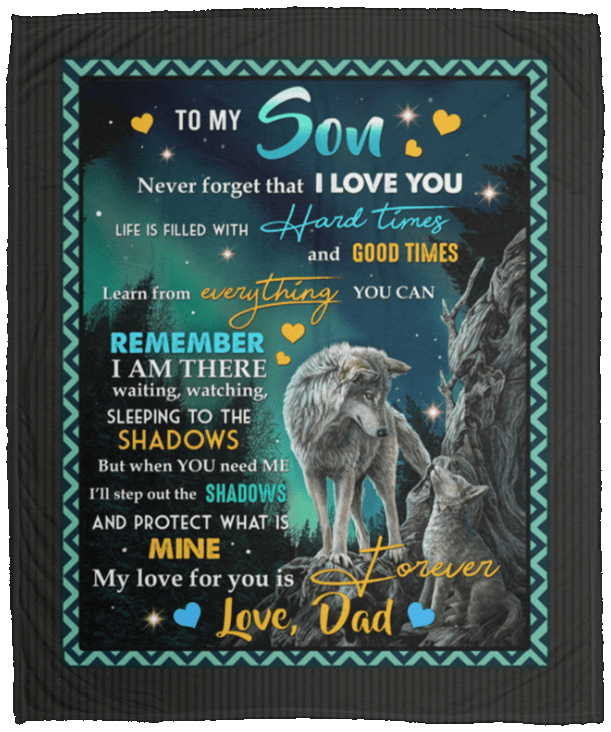 Shop To My Son Never Forget That I Love You Life Is Hard Times Gift from Dad Fleece Blanket – Premium Sherpa Blanket.
