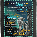 At CubeBik LLC, besides blankets, we also offer tees, hoodies, sweaters, raglans, tanks, wall arts, canvases, mugs, blankets, throw pillows, tote bags, hats, accessories and more on our website, so do not miss other To My Son from Dad, Letters to My Son from Dad, to My Son Dog Tag from Dad, to My Son Wallet from Dad, Personalized Gifts for Dad relating merchandise, and all of them are one of a kind custom designs you can’t get elsewhere in normal stores. Let’s discover CubeBik and find your favorites. We can’t wait to surprise and build beautiful memory with you and your loved ones.