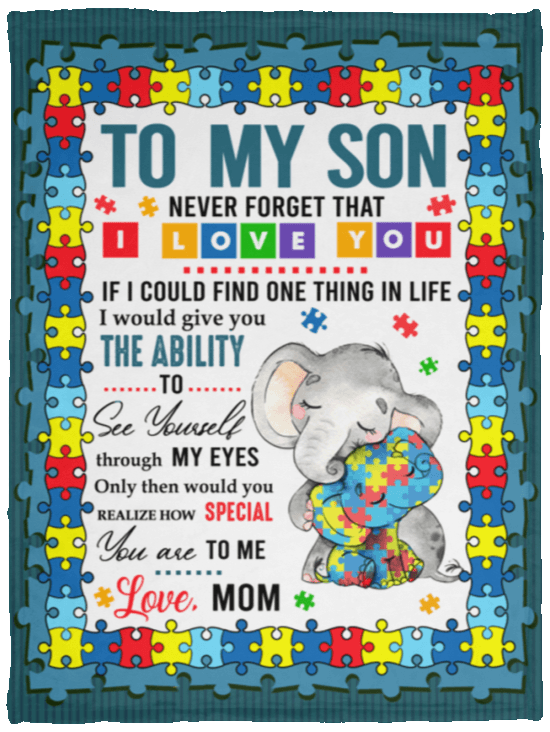 To My Son Never Forget That I Love You From Mom Autism Awareness Fleece Blanket – Sherpa Blanket