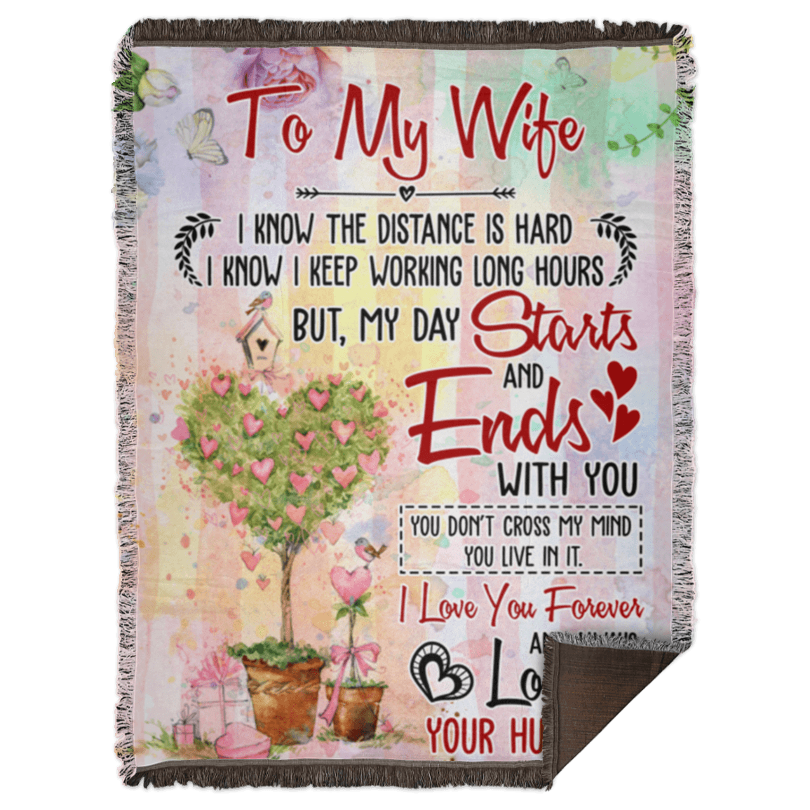 To My Wife I Know The Distance Is Hard Love Your Husband Fleece Blanket – Premium Sherpa Blanket – Woven Blanket