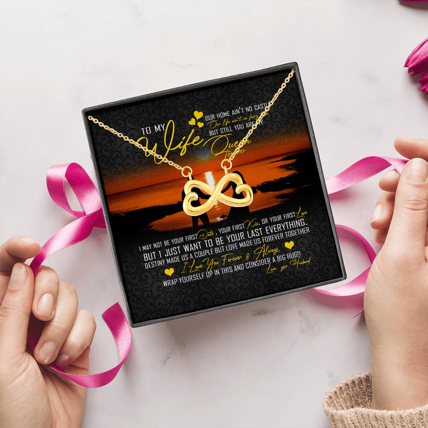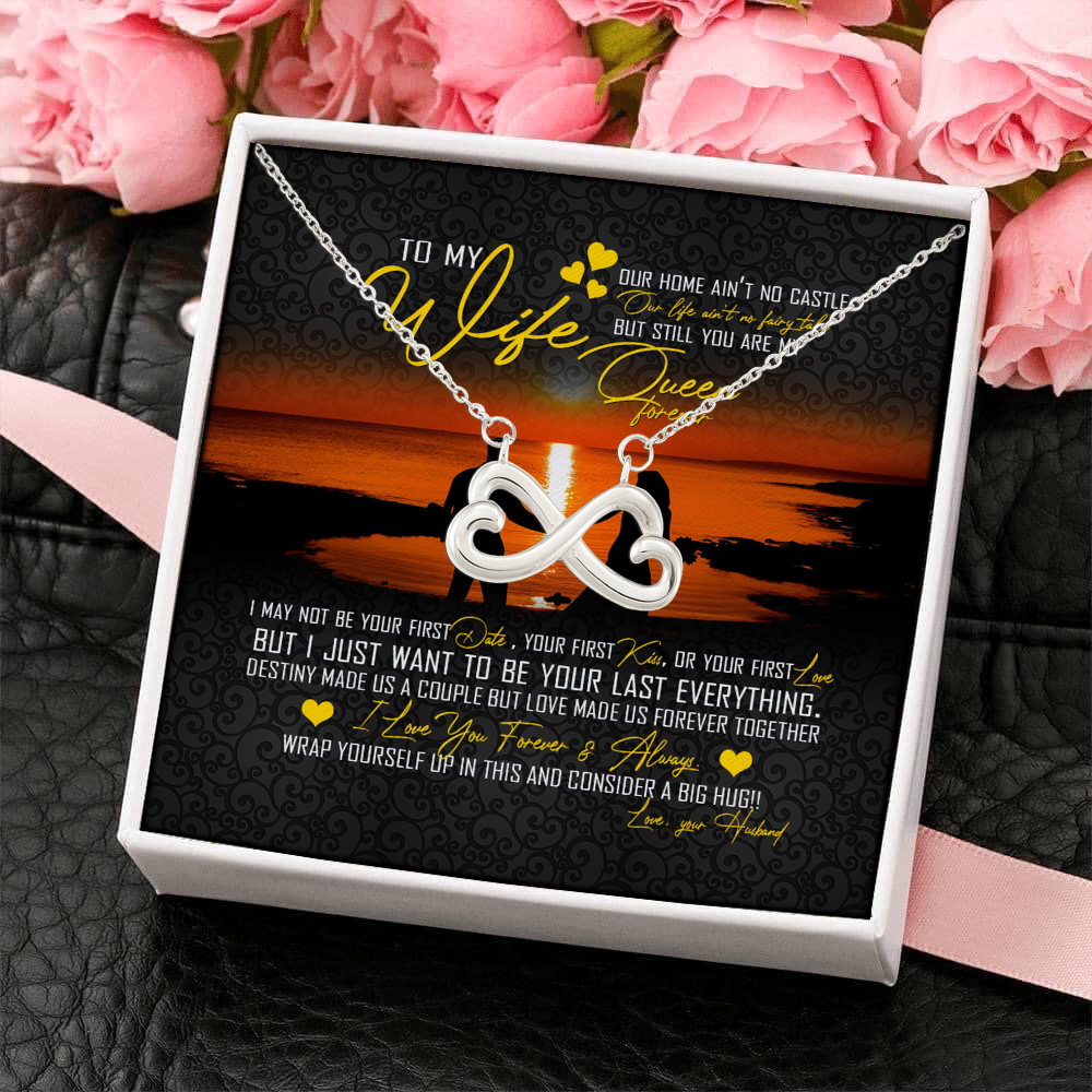 Let’s Shop To My Wife Our Home Ain’t No Castle Our Life Ain’t No Fairy Tale You Are Still My Queen Infinity Heart Pendant Necklace!