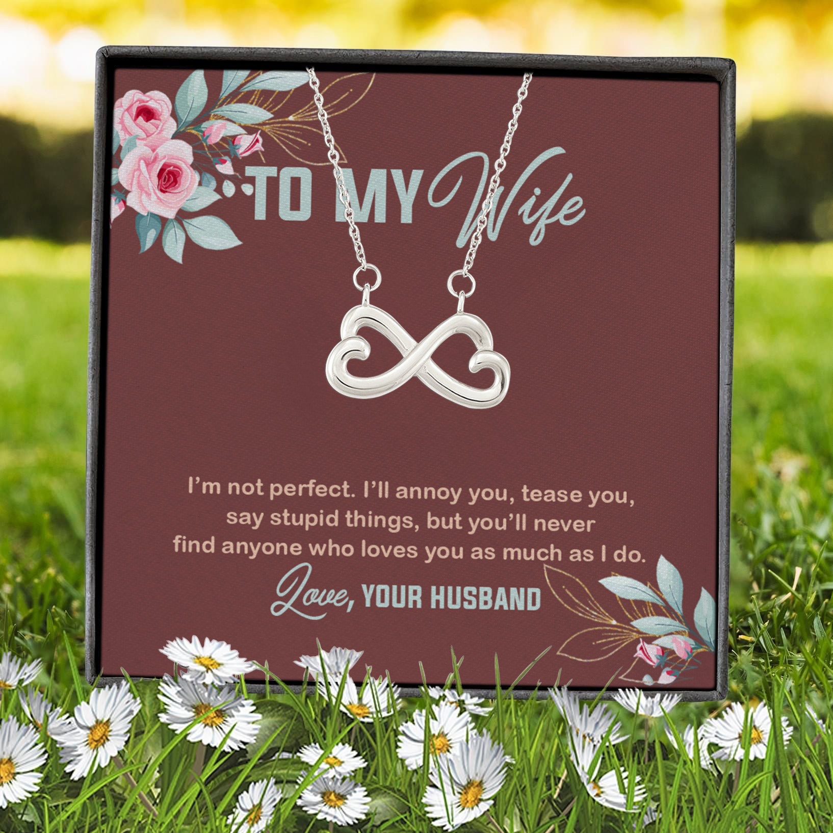 Let’s Shop To My Wife I’m Not Perfect I’ll Annoy You Tease You Say Stupid Things From Husband Infinity Heart Pendant Necklace!