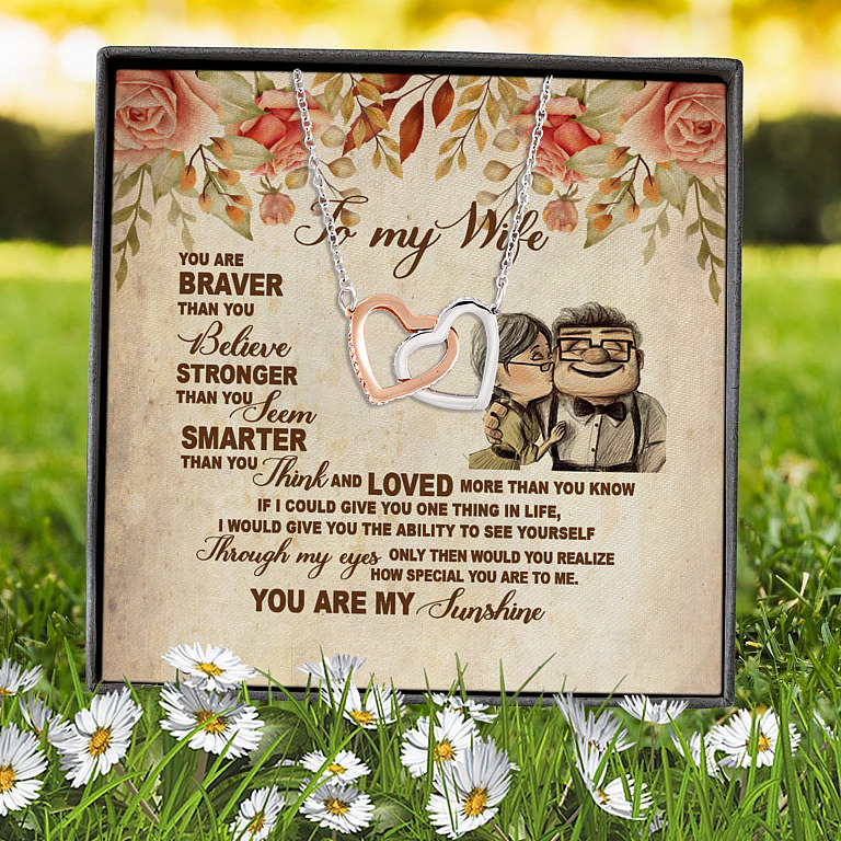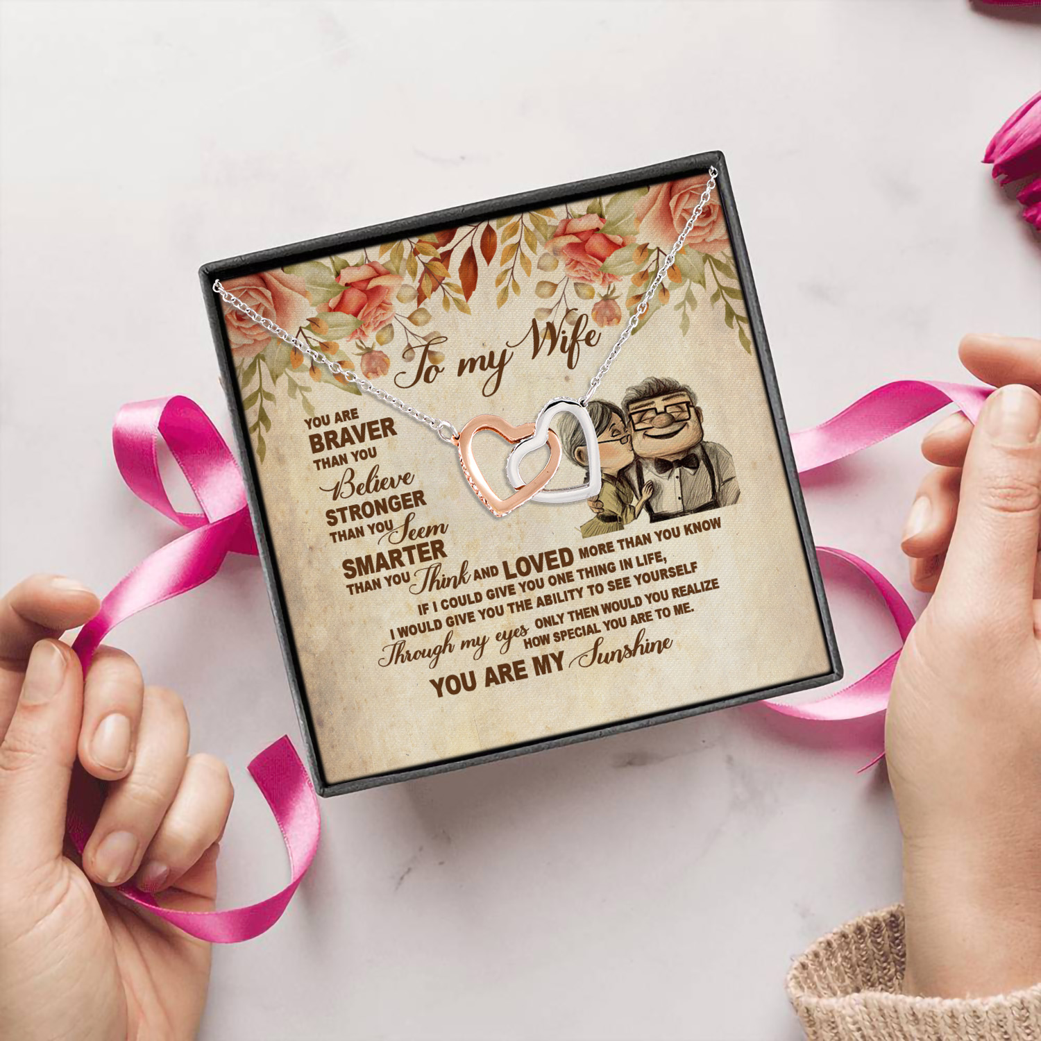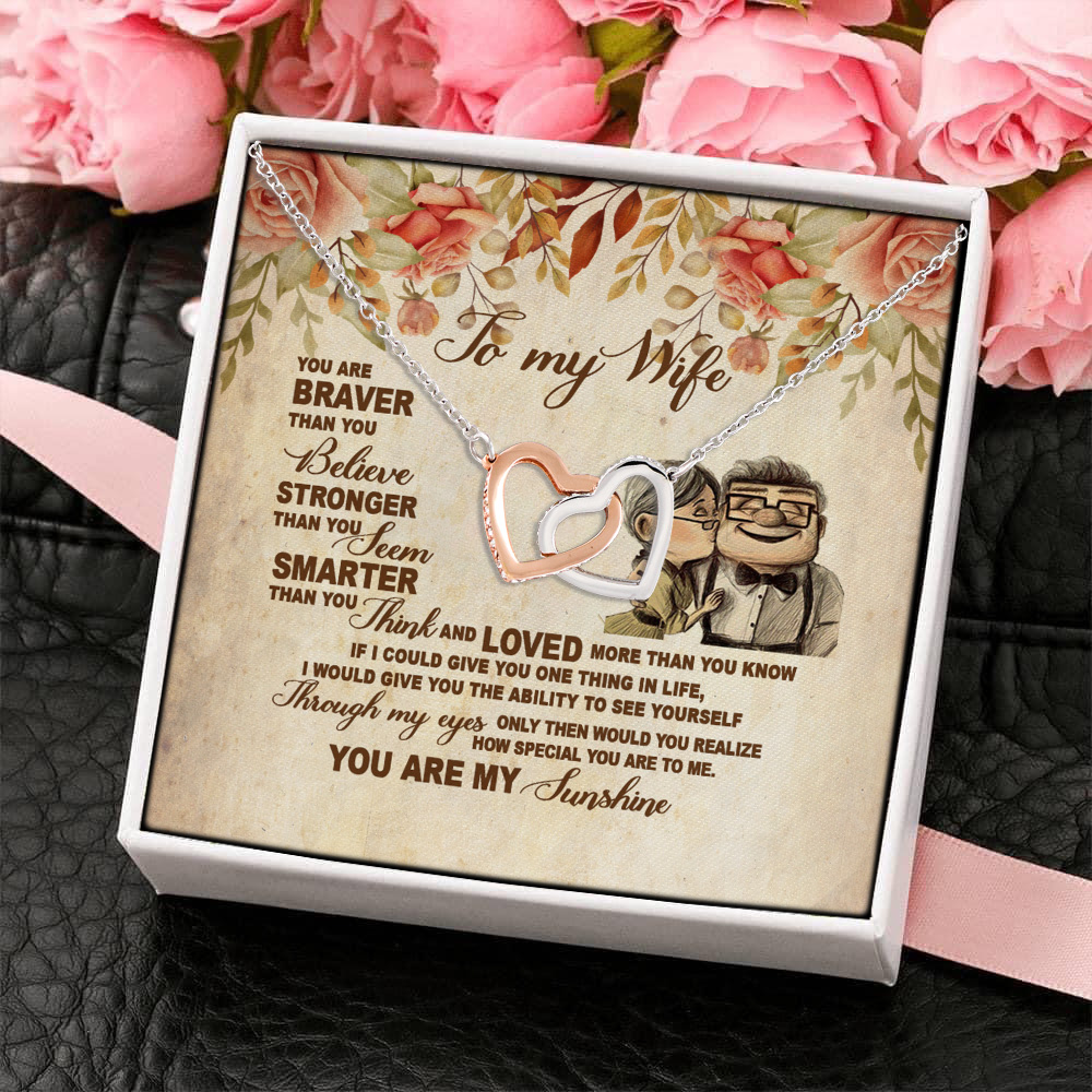 Let’s Shop To My Wife You Are Braver Than You Believe Stronger Than You Seem Joined Interlocking Hearts Pendant Necklace!
