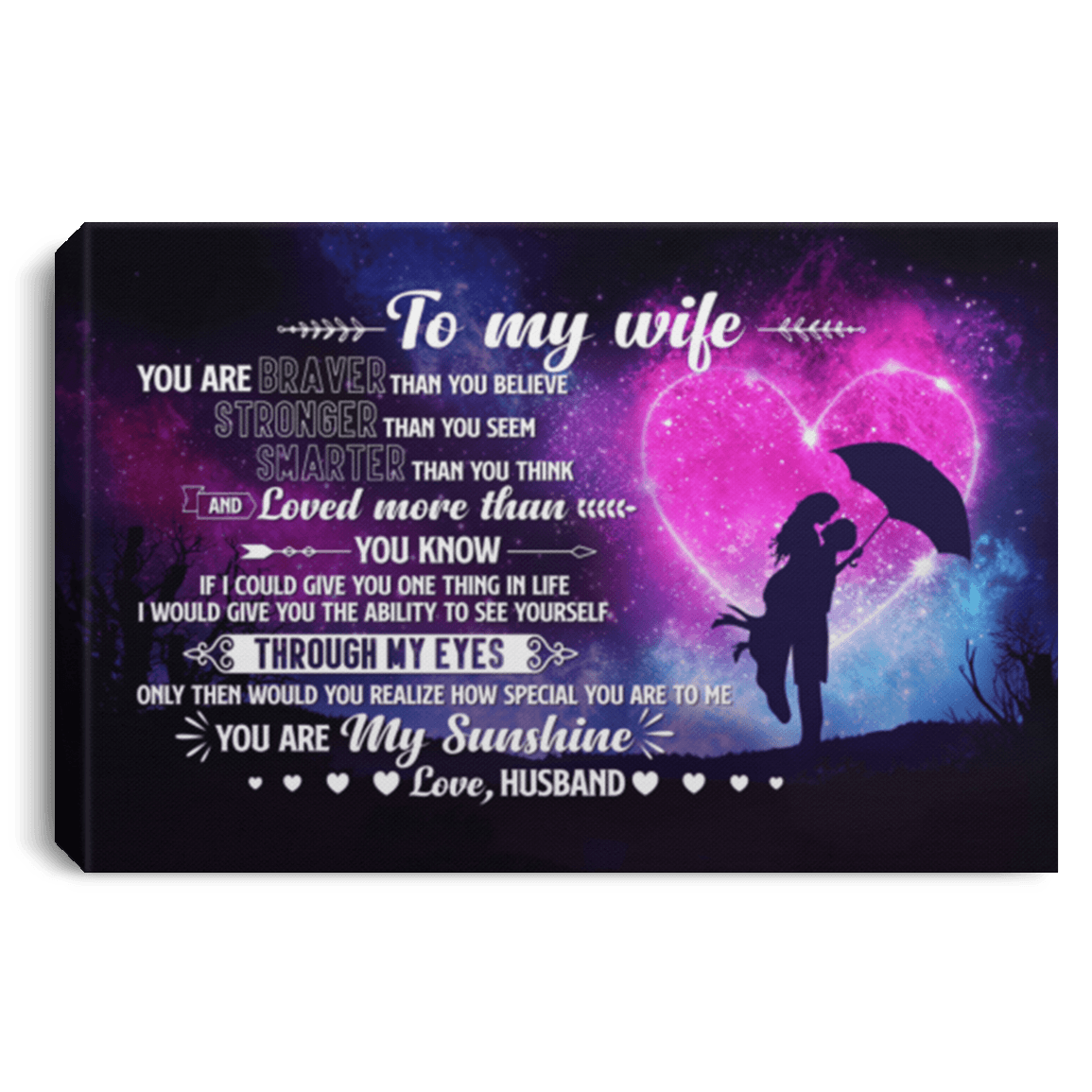 adroll_products = [{"product_id":"398932","price":"35.99","category":"canvas prints - wall arts","name":"To My Wife You Are Braver Than You Believe Stronger Than You Seem Smarter Than You Think Framed Canvas - Unframed Poster"}];