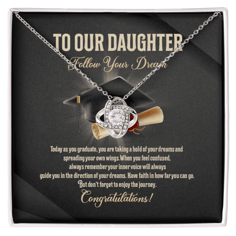 Let’s Shop To Our Daughter Follow Your Dream Today As You Love Knot Necklace – Daughter Graduation Gifts From Mom And Dad!