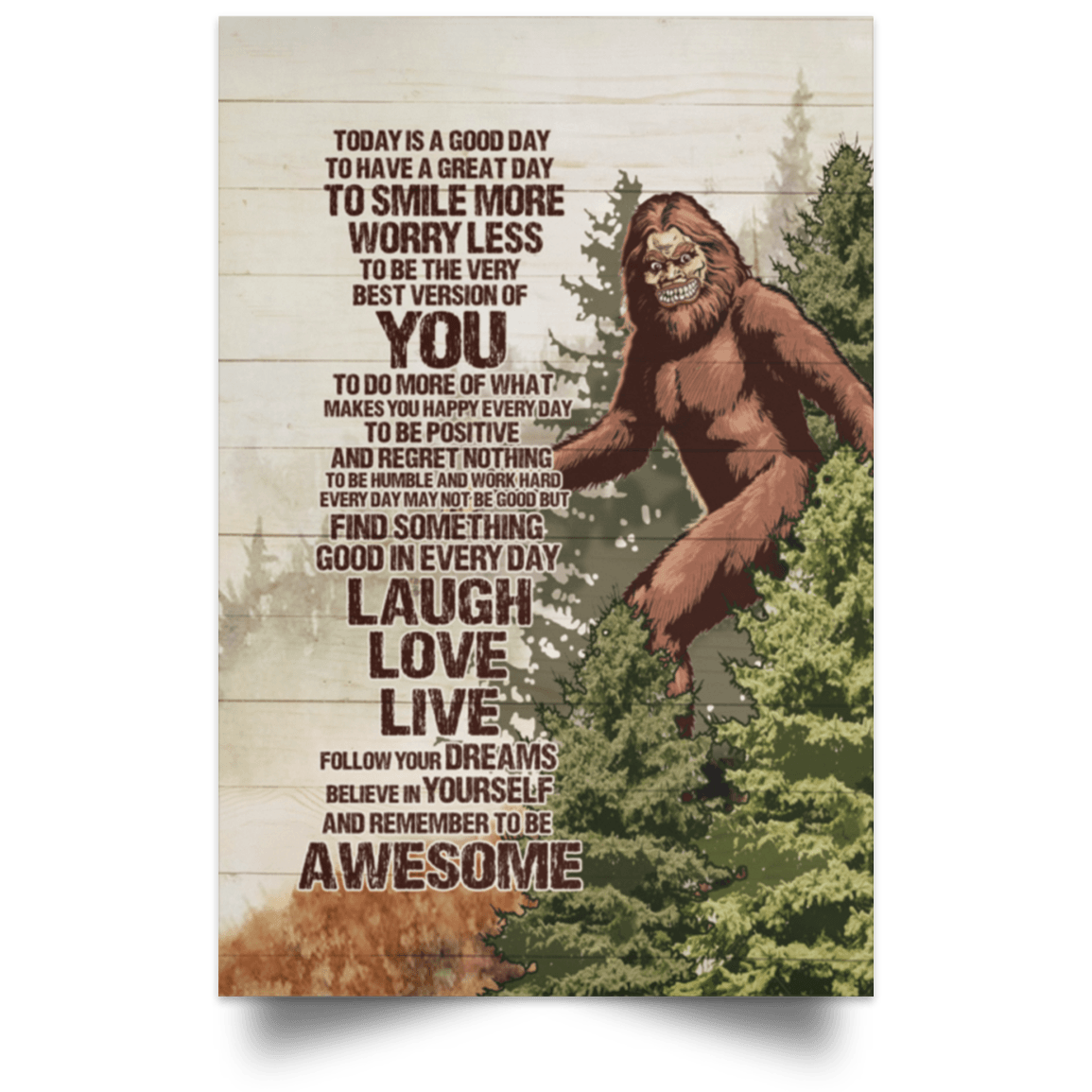 Today Is A Good Day To Smile More Worry Less BigFoot Framed Canvas – Unframed Poster