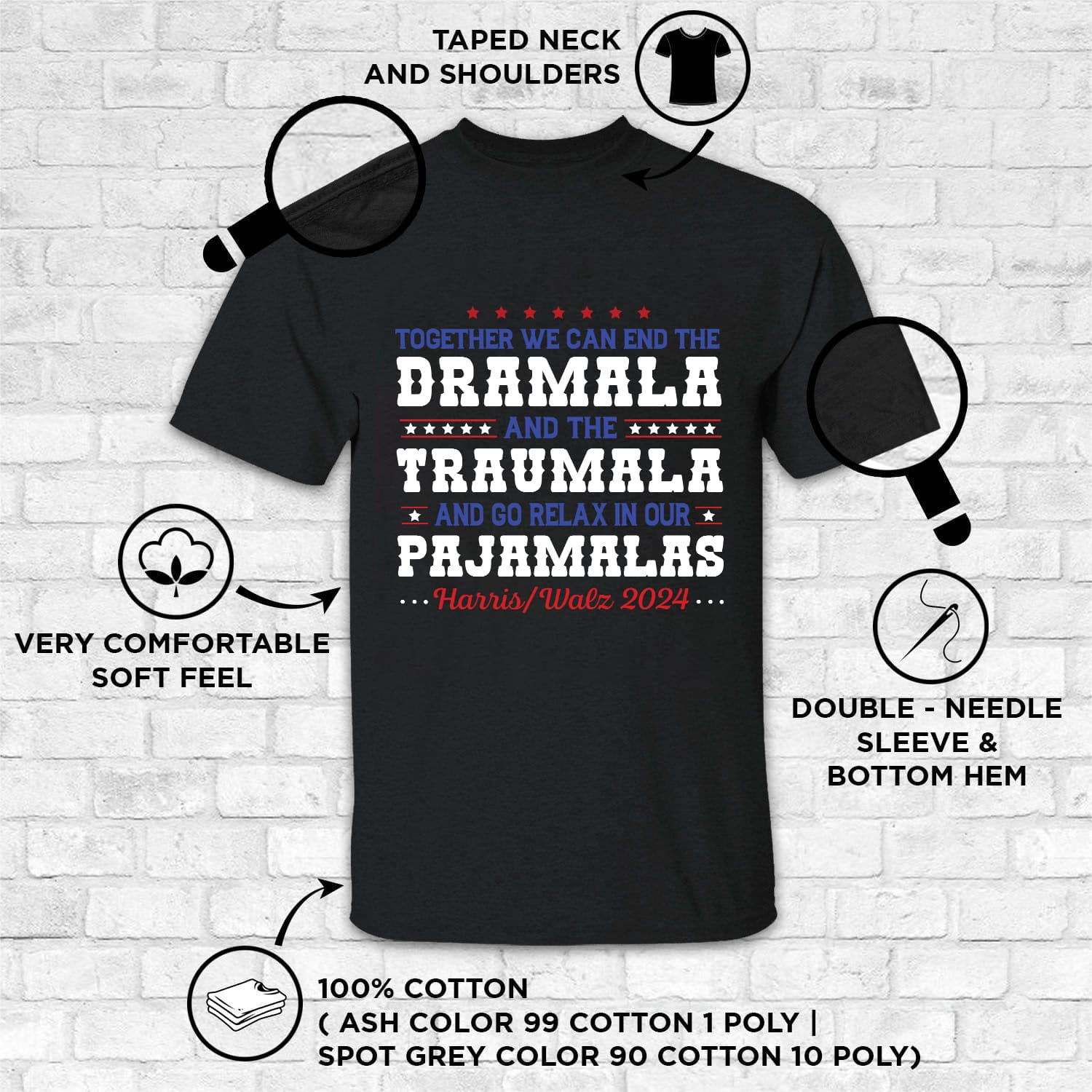 At CubeBik, besides custom apparel, we also offer tees, hoodies, sweaters, raglans, tanks, wall arts, canvases, posters, mugs, blankets, engraved jewelry, personalized necklaces, printed face masks, throw pillows, tote bags, hats, accessories and more on our website, so do not miss our other Together We Can End the Dramala Shirt, Together We Can End the Dramala and the Traumala Shirt, Together We Can End the Dramala and the Traumala T-Shirt, Harris Waltz 2024 Shirt, Harris Waltz 2024, Harris Waltz 2024 Shirt Women, Harris Waltz 2024 T Shirt. Moreover, all the products are made-to-order and one of a kind custom designs you can’t get elsewhere in normal stores. Let’s discover CubeBik.com now and find your favorite personalized items. We can’t wait to surprise and build beautiful memories with you and your loved ones.