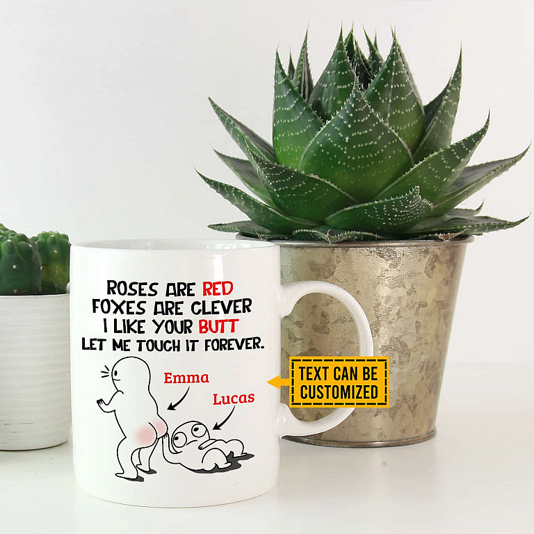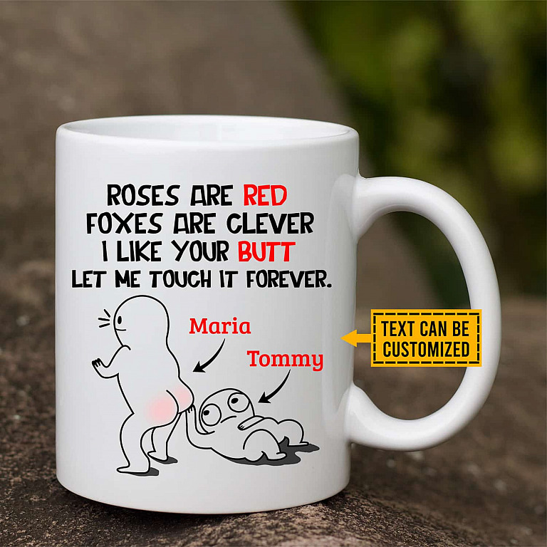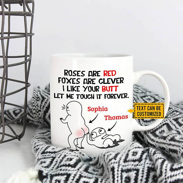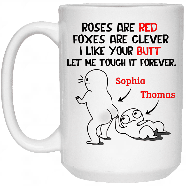 Let’s Shop Roses Are Red Foxes Are Clever I Like Your Butt Let Me Touch It Forever Personalized Couple Name Coffee Mug!