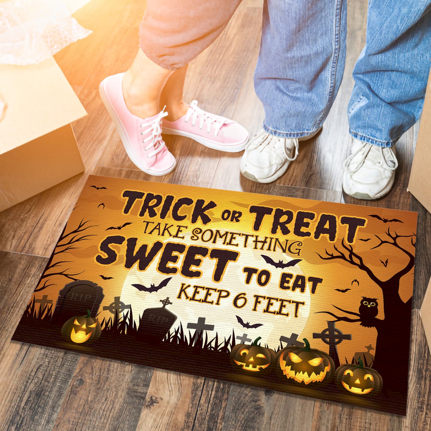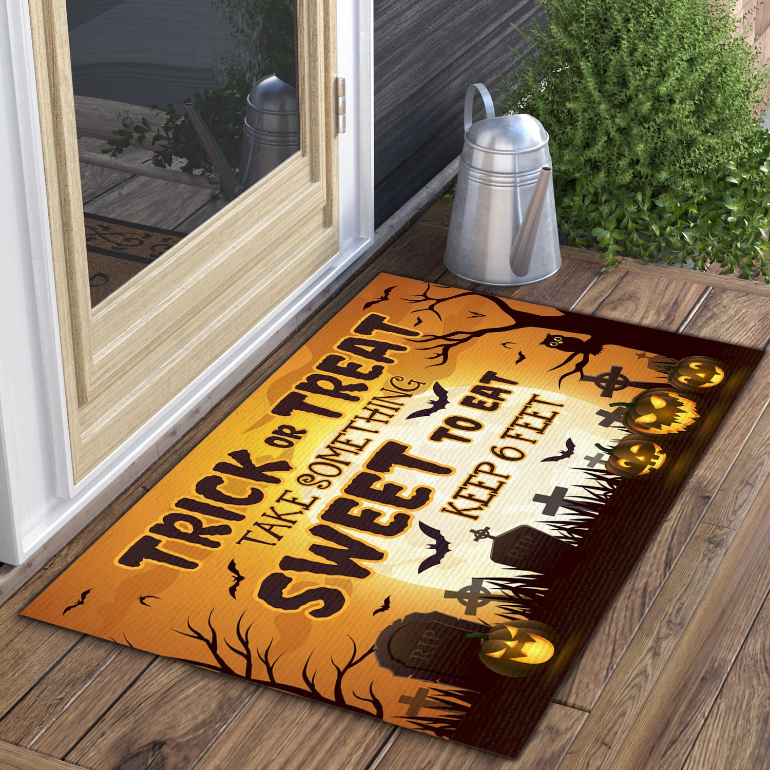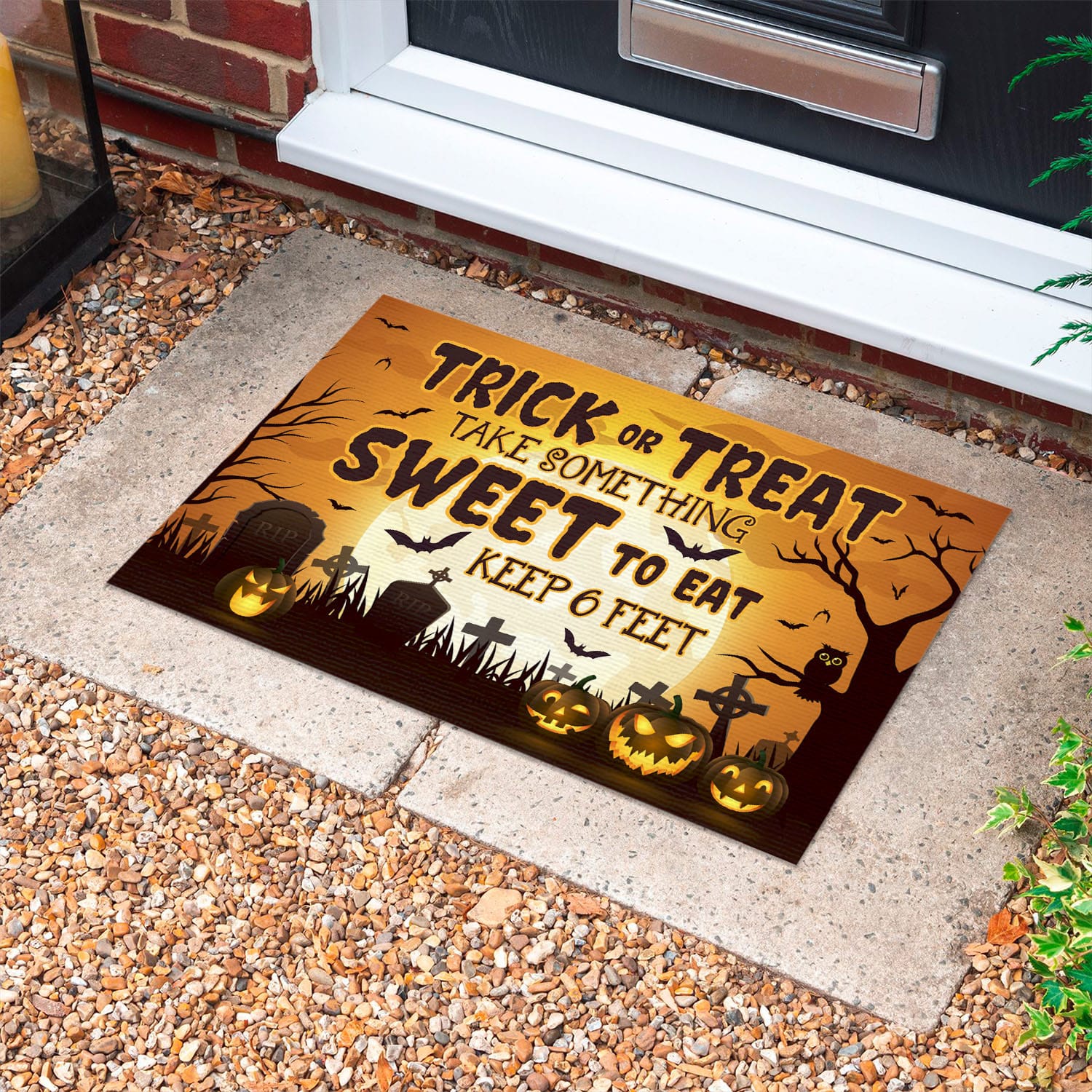 Let’s Shop Trick or Treat Take Something Sweet to Eat Keep 6 Feet Doormat – Halloween Outdoor Indoor Doormat!