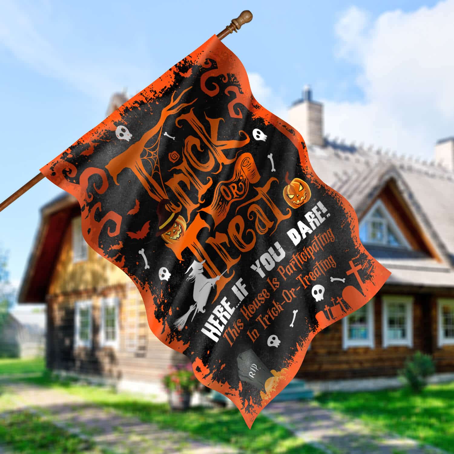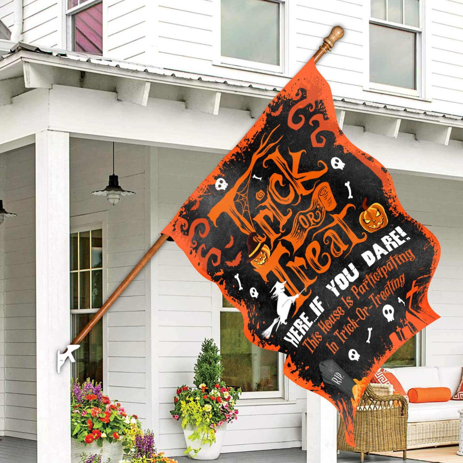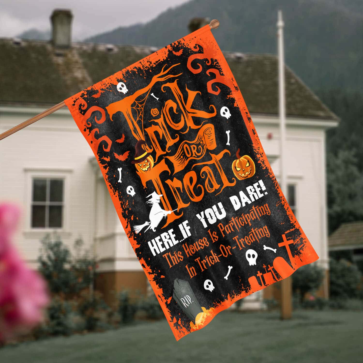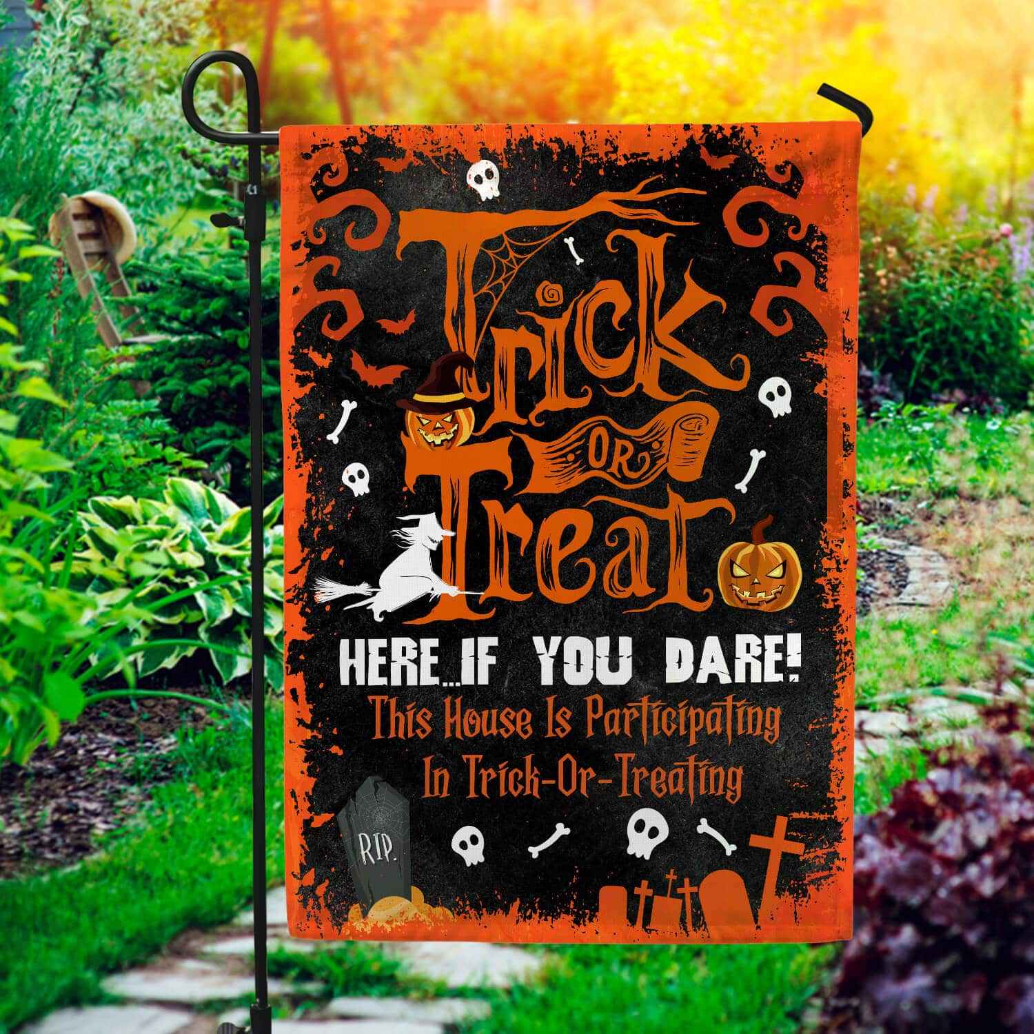 Let’s Shop Trick Or Treat Here If You Dare Flag – Halloween Trick Or Treaters Garden Flag – House Flag!