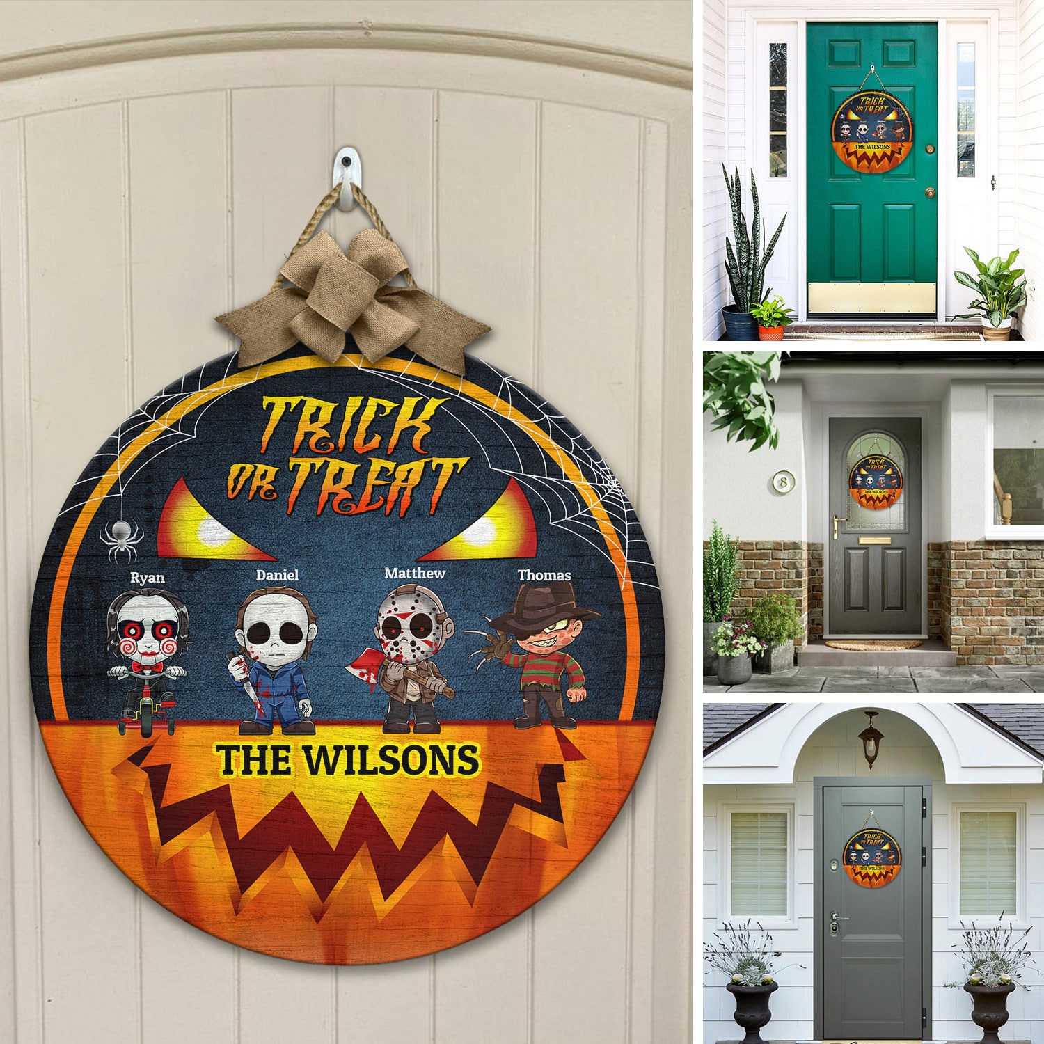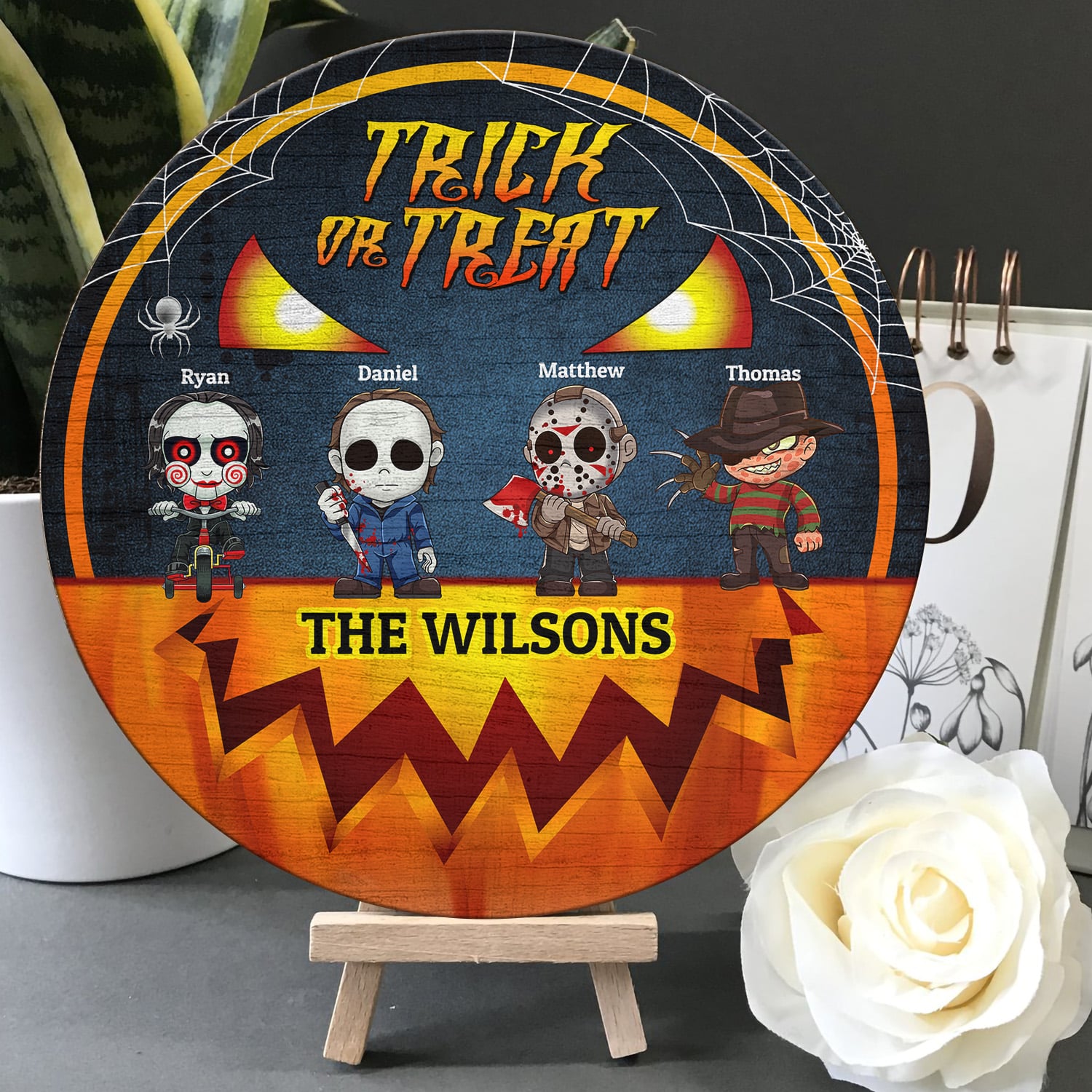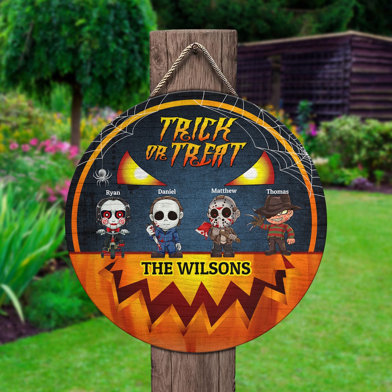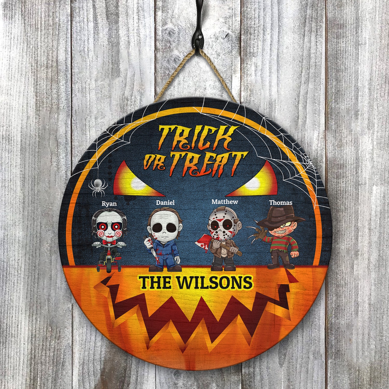 Let’s Shop Trick or Treat Personalized Horror Character Door Sign – Custom Halloween Character Front Porch Sign – Halloween Birthday Gifts!