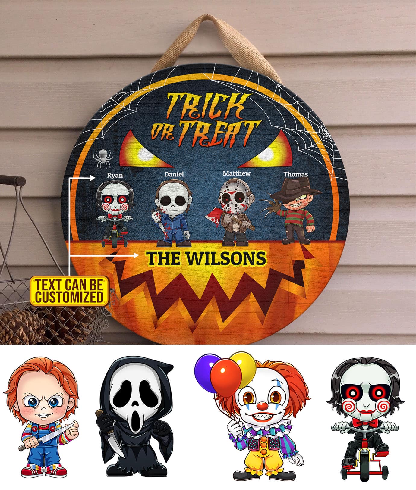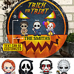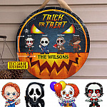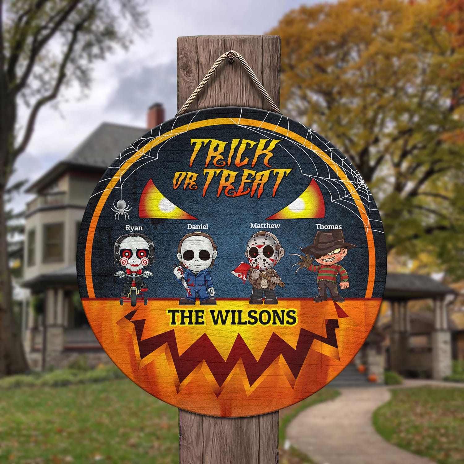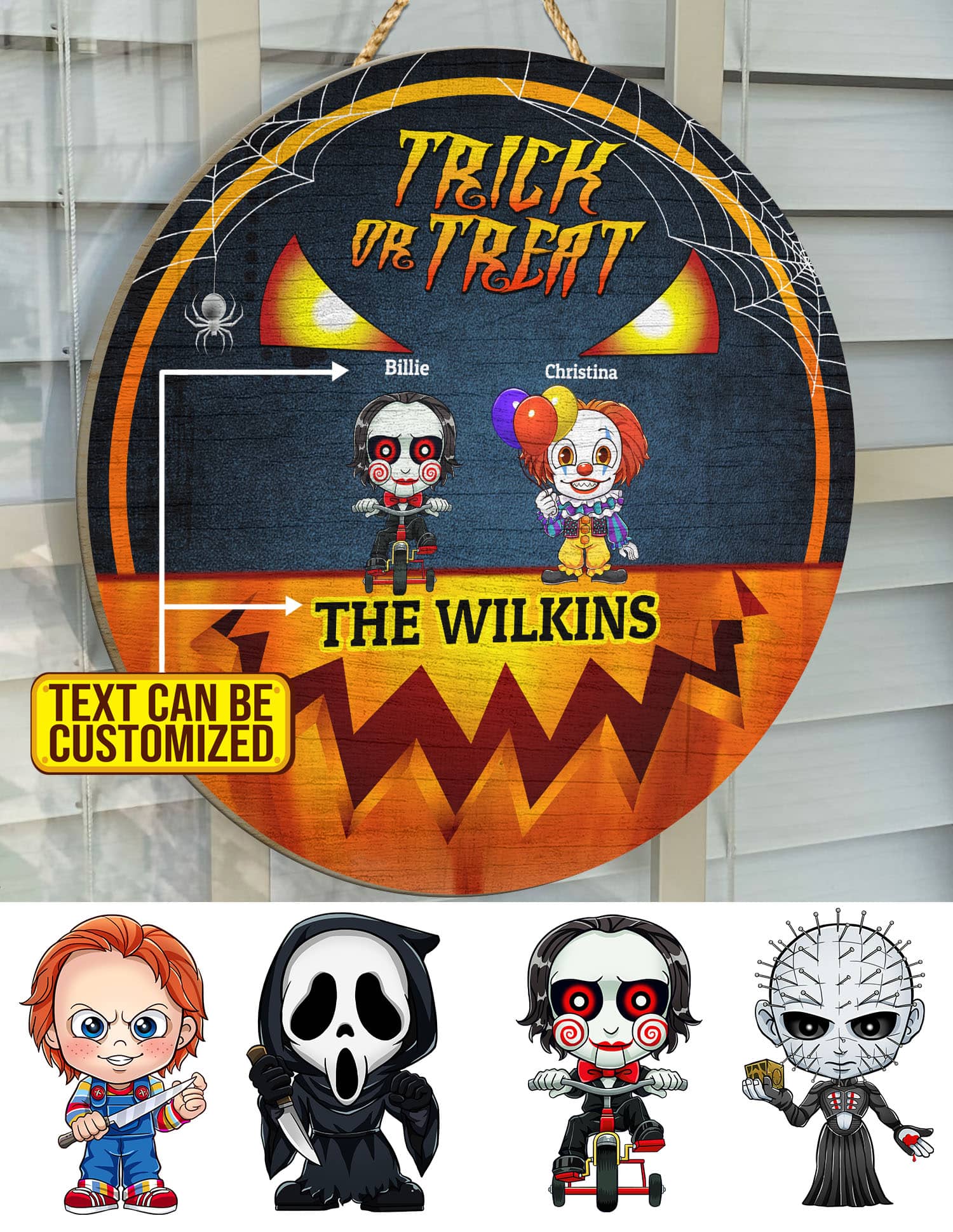 Let’s Shop Trick or Treat Personalized Horror Character Door Sign – Custom Halloween Character Front Porch Sign – Halloween Birthday Gifts!