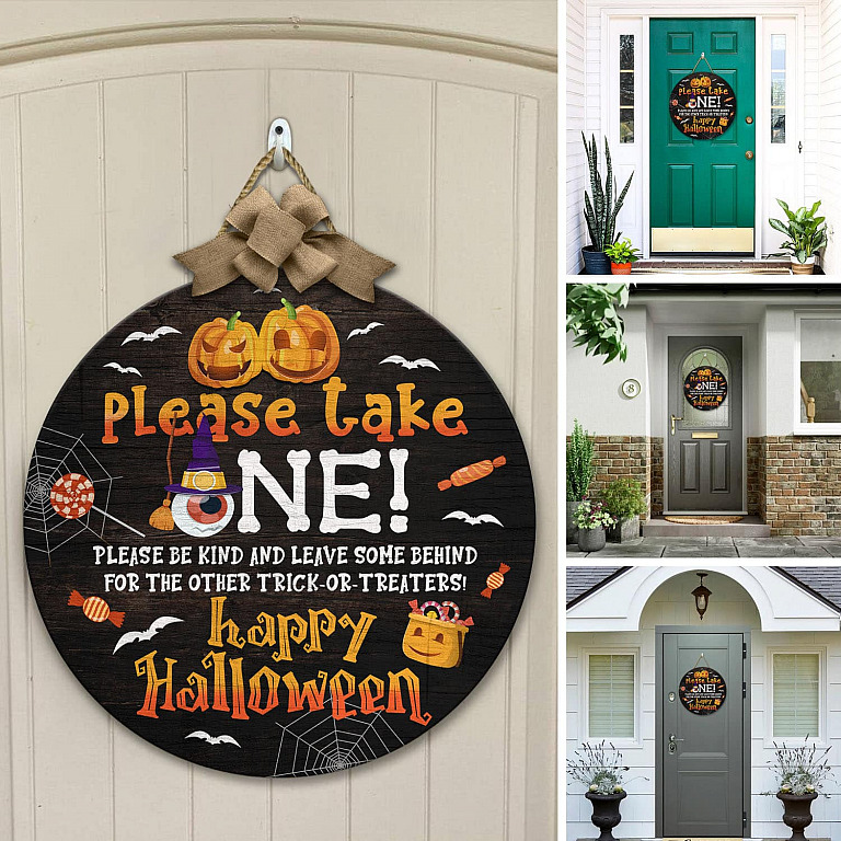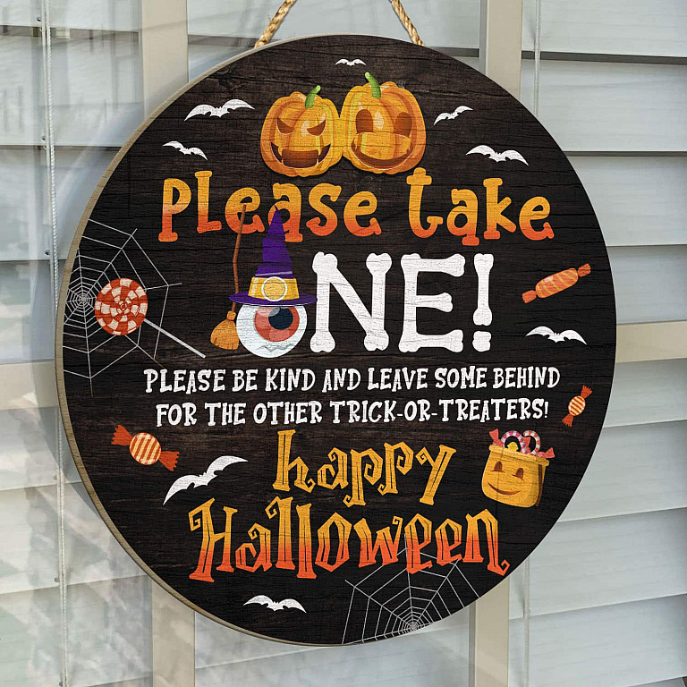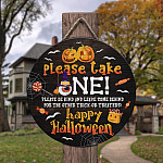 Let’s Shop Halloween Door Sign Please Take One Please Be Kind Other Trick or Treaters Circle Wooden Door Sign – Front Porch Sign!