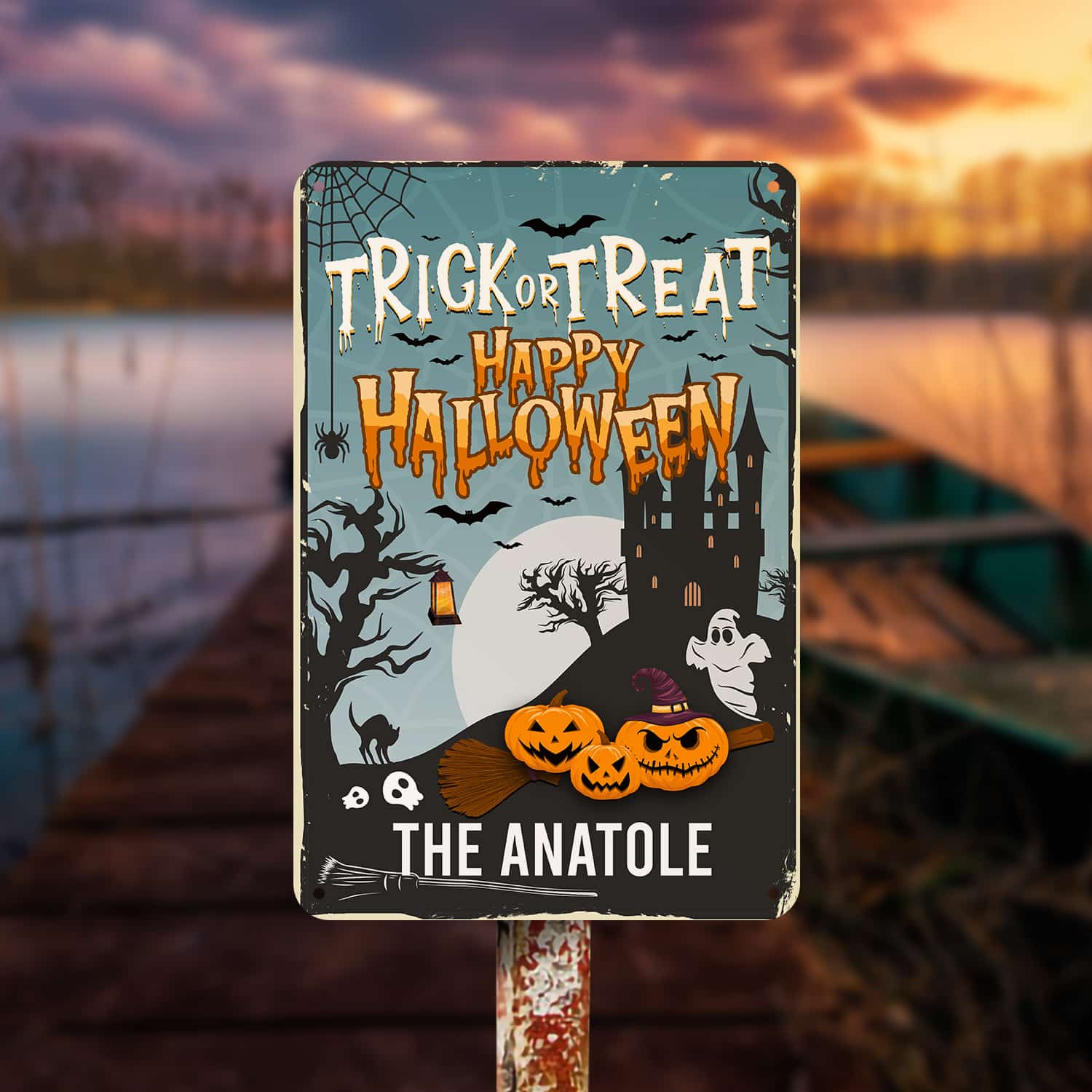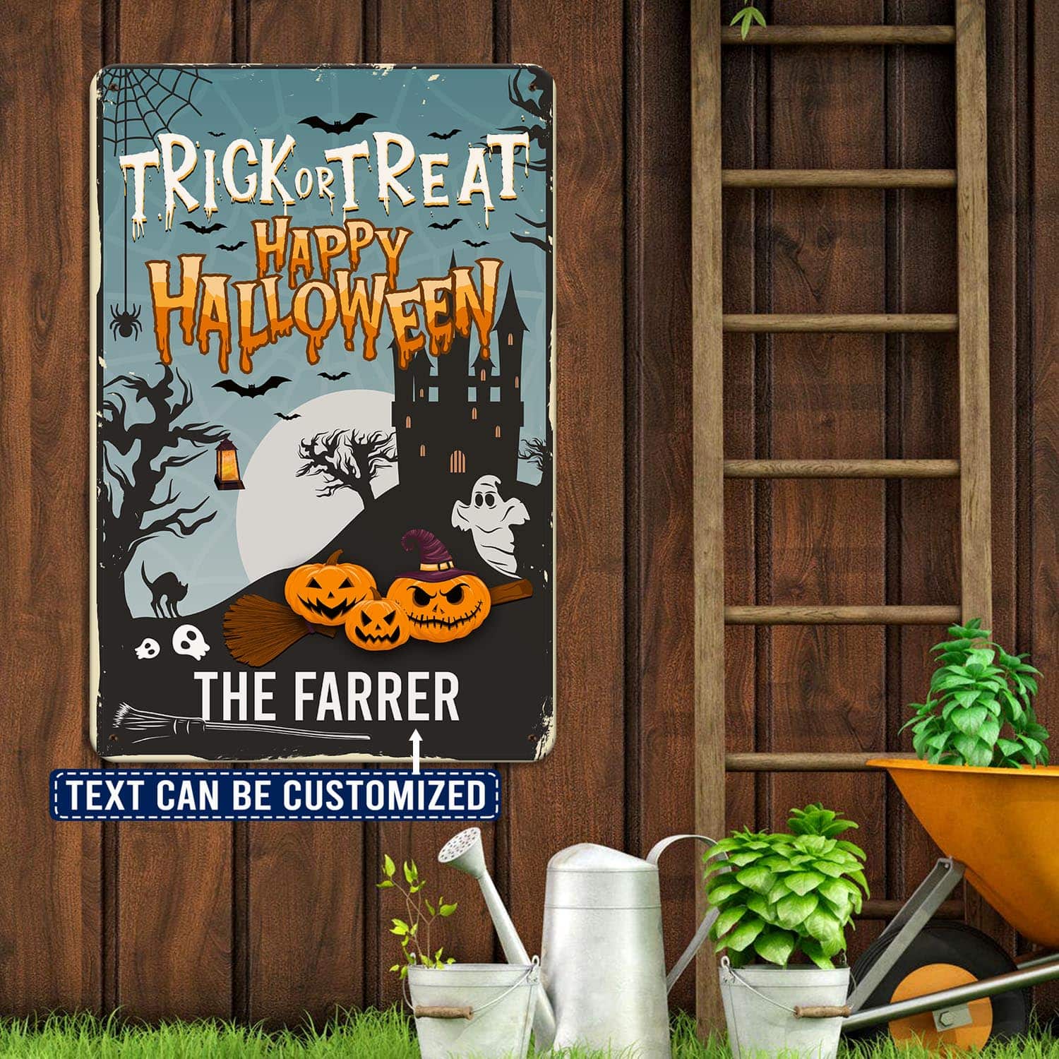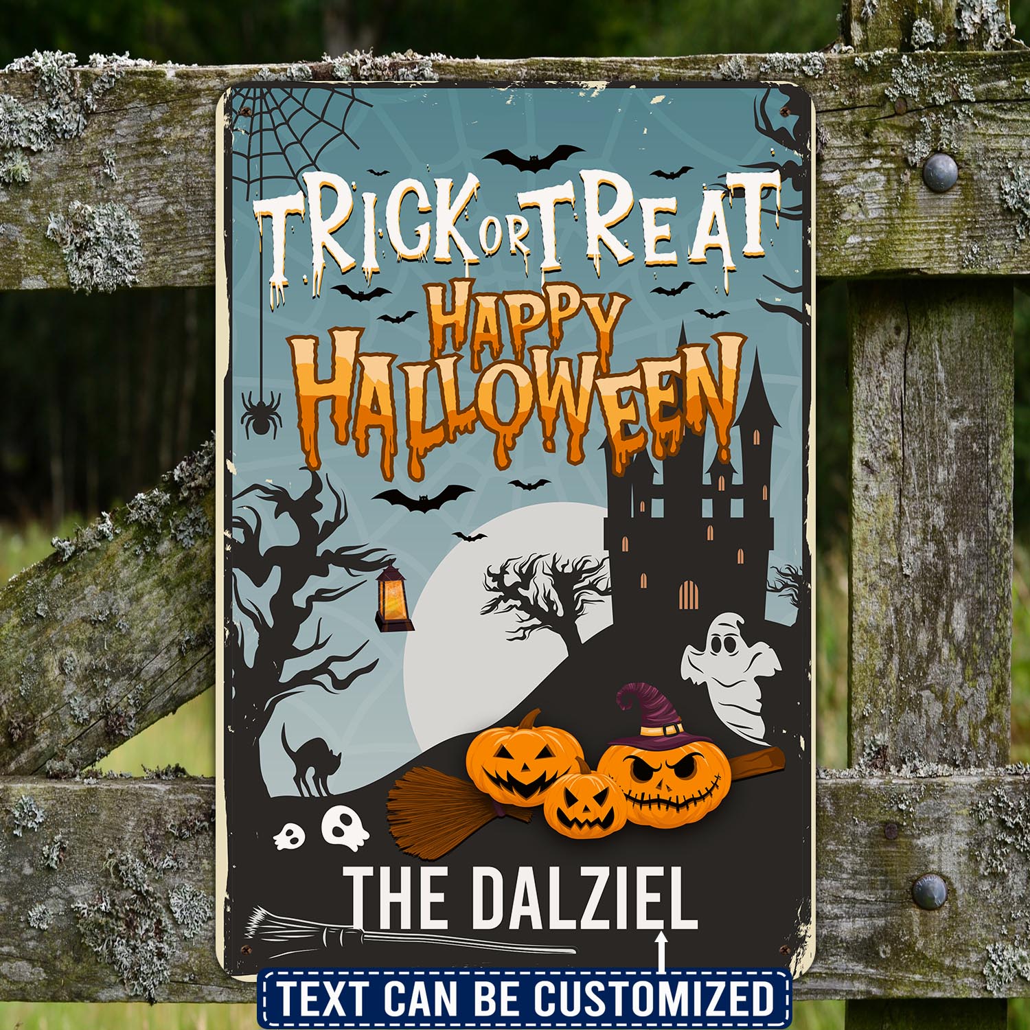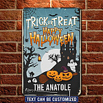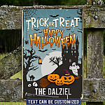 Let’s Shop Personalized Family Name Trick or Treat Happy Halloween Decorative Metal Sign – Halloween Decorations!