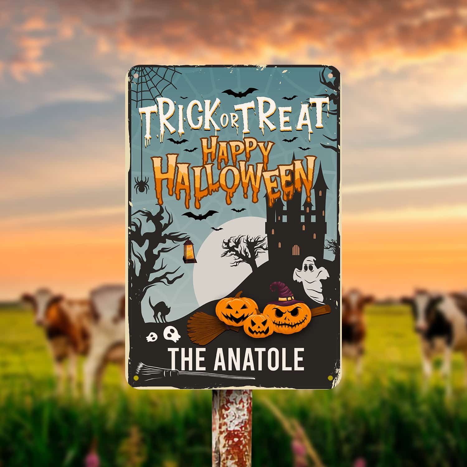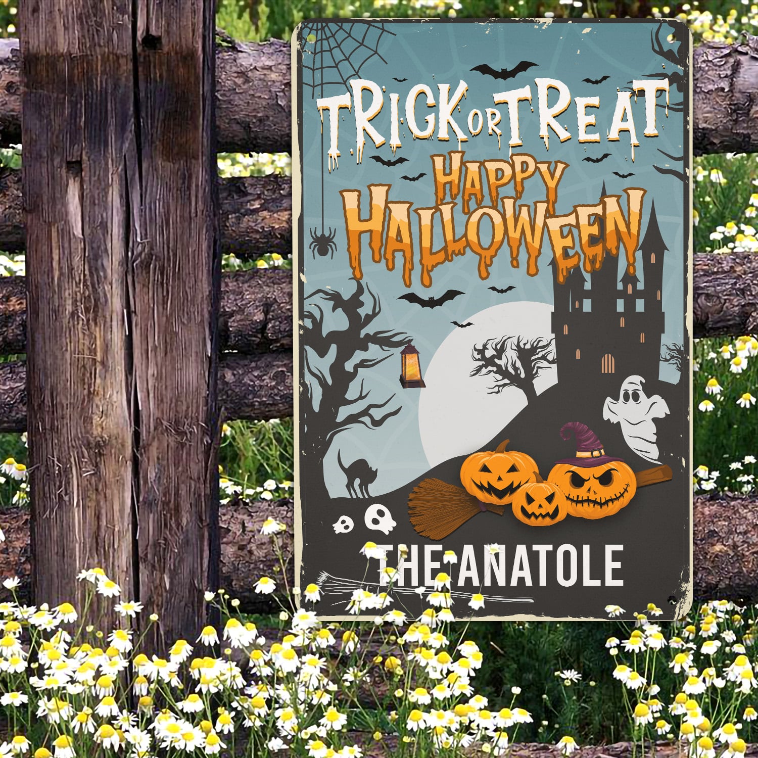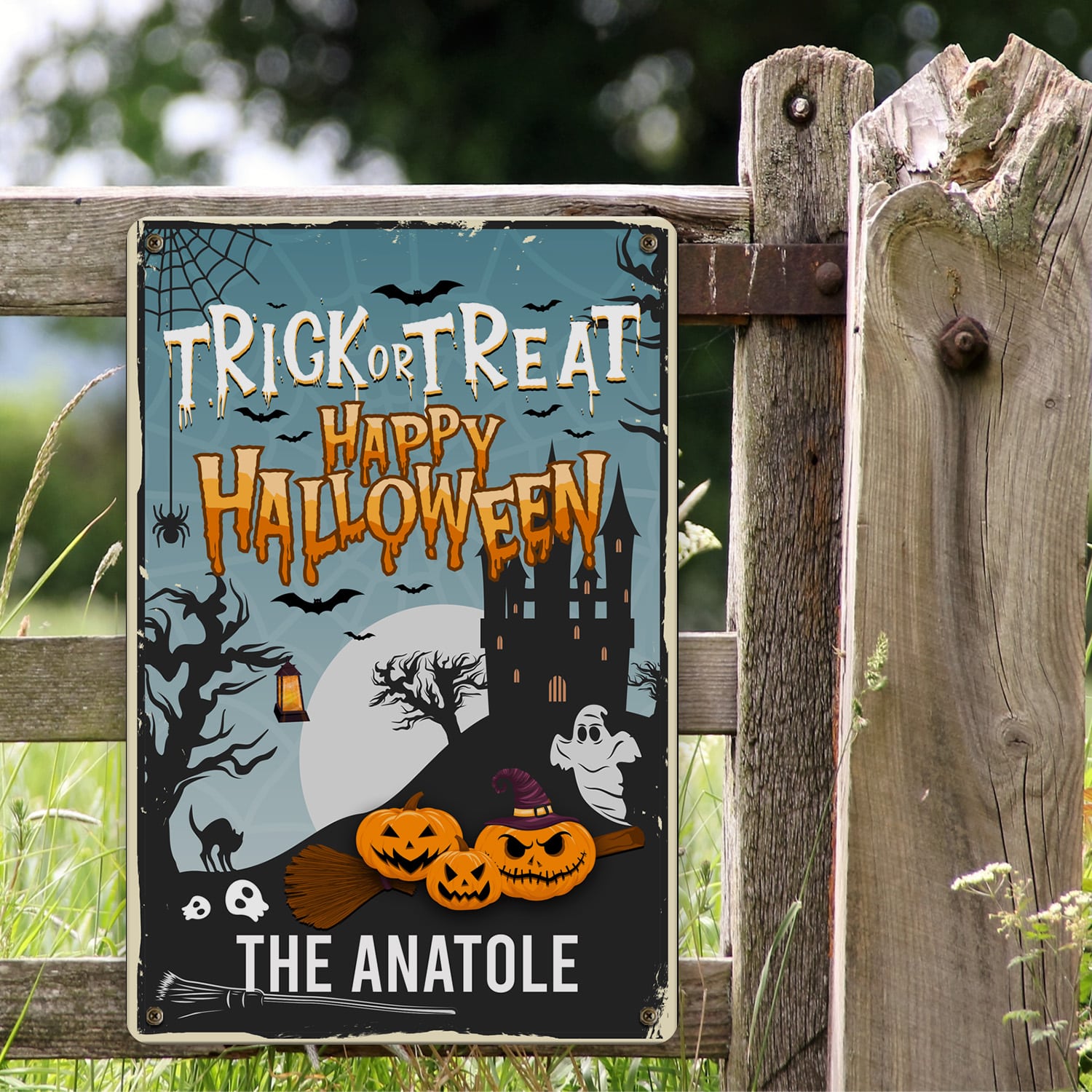 Let’s Shop Personalized Family Name Trick or Treat Happy Halloween Decorative Metal Sign – Halloween Decorations!