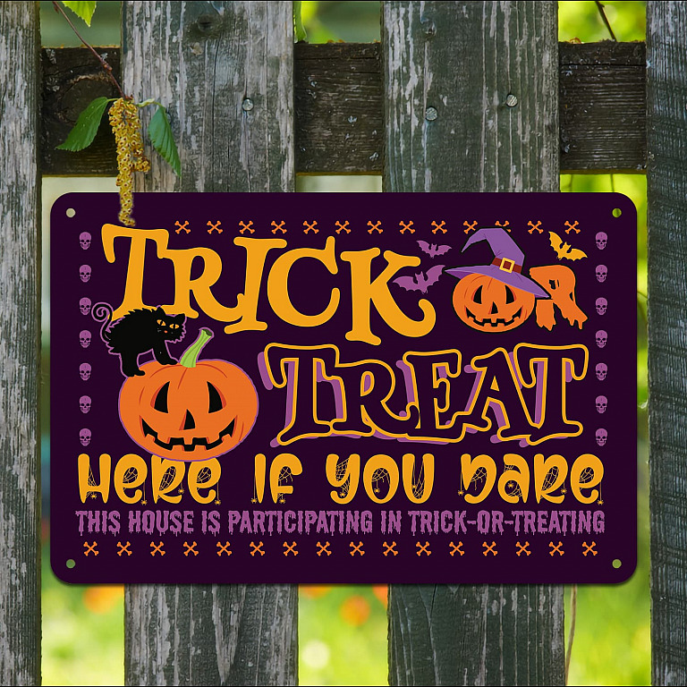 Let’s Shop Trick or Treat Here if You Dare This House Is Participating in Trick or Treating Decorative Metal Sign – Halloween Indoor Outdoor Decor!