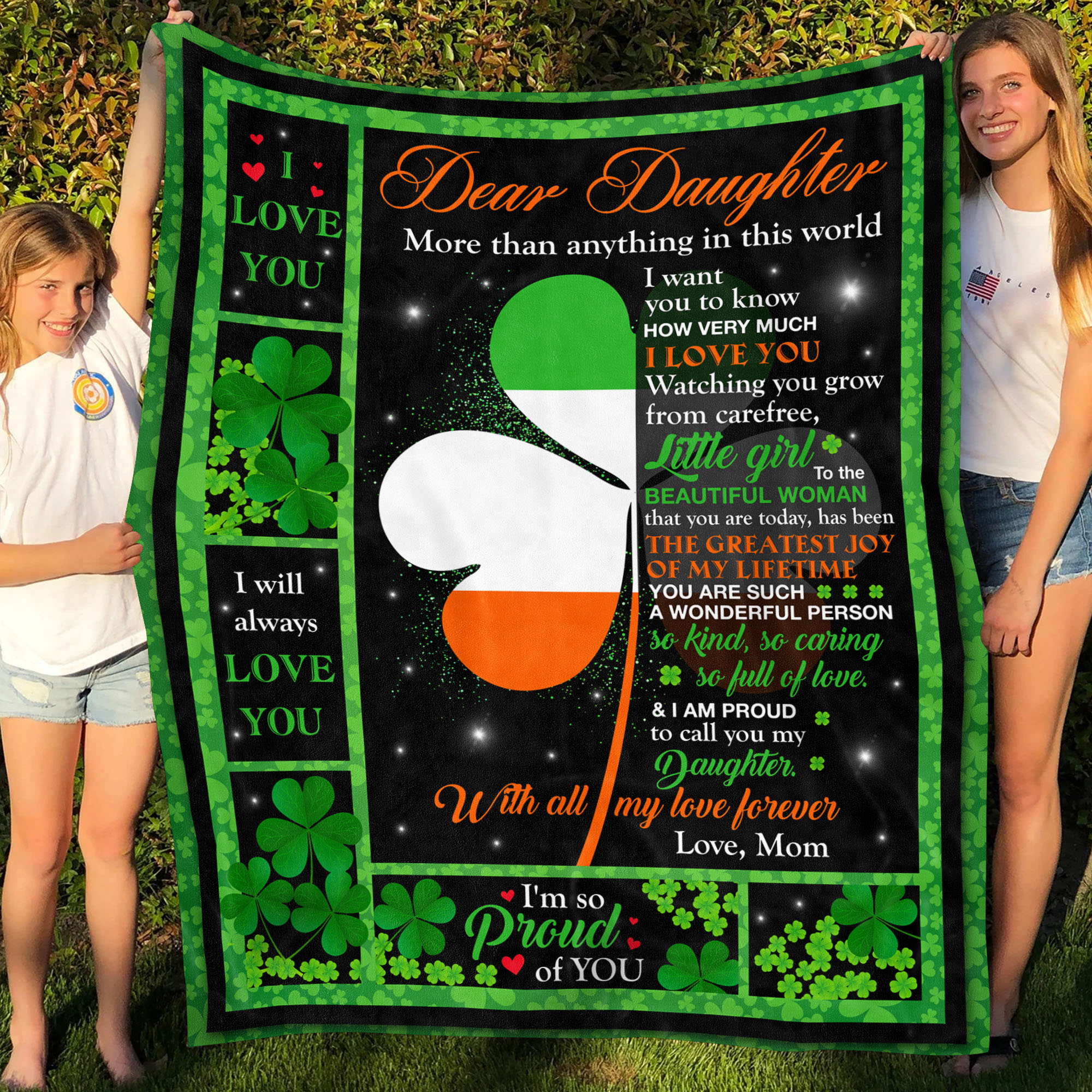 Are you spending too much time to find creative merchandise for you or suitable & special gifts for your mommy, your daddy, your son, your daughter, your children, your friends or someone you love? The struggle is over because we have various Irish Blanket to Daughter from Mom, to My Daughter Irish Blanket, Irish Blanket to My Daughter , Green Blanket to My Daughter, Trifolium to My Daughter Blanket which will make perfect presents for your beloveds. In order to make your present stand out, we have created lots of unique and awesome customized photo gifts & personalized designs.