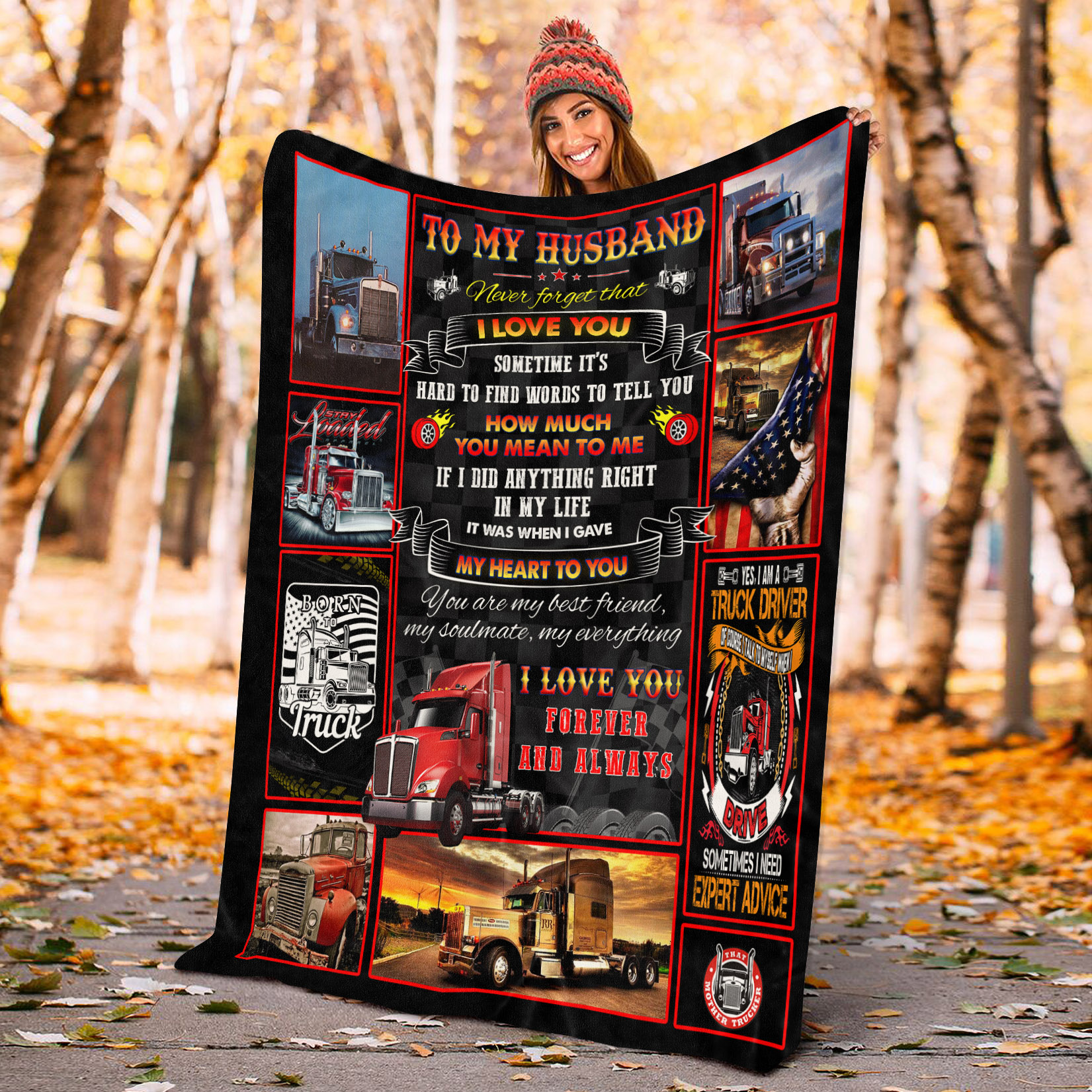 Let’s Shop Trucker Wife To My Husband Never Forget That I Love You Fleece Blanket – Gift For Trucker Husband!