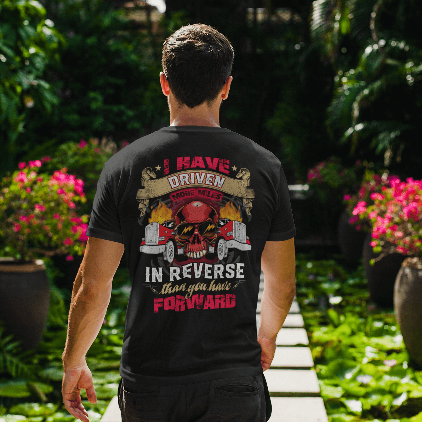 Trucker Shirt – I Have Driven More Miles In Reverse Than You Have Forward Print On Back T-shirt