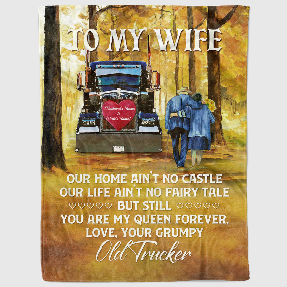 Let’s Shop Personalized to My Trucker Wife Our Home Ain’t No Castle Our Life Ain’t Fairy Tale from Husband Premium Sherpa Blanket!
