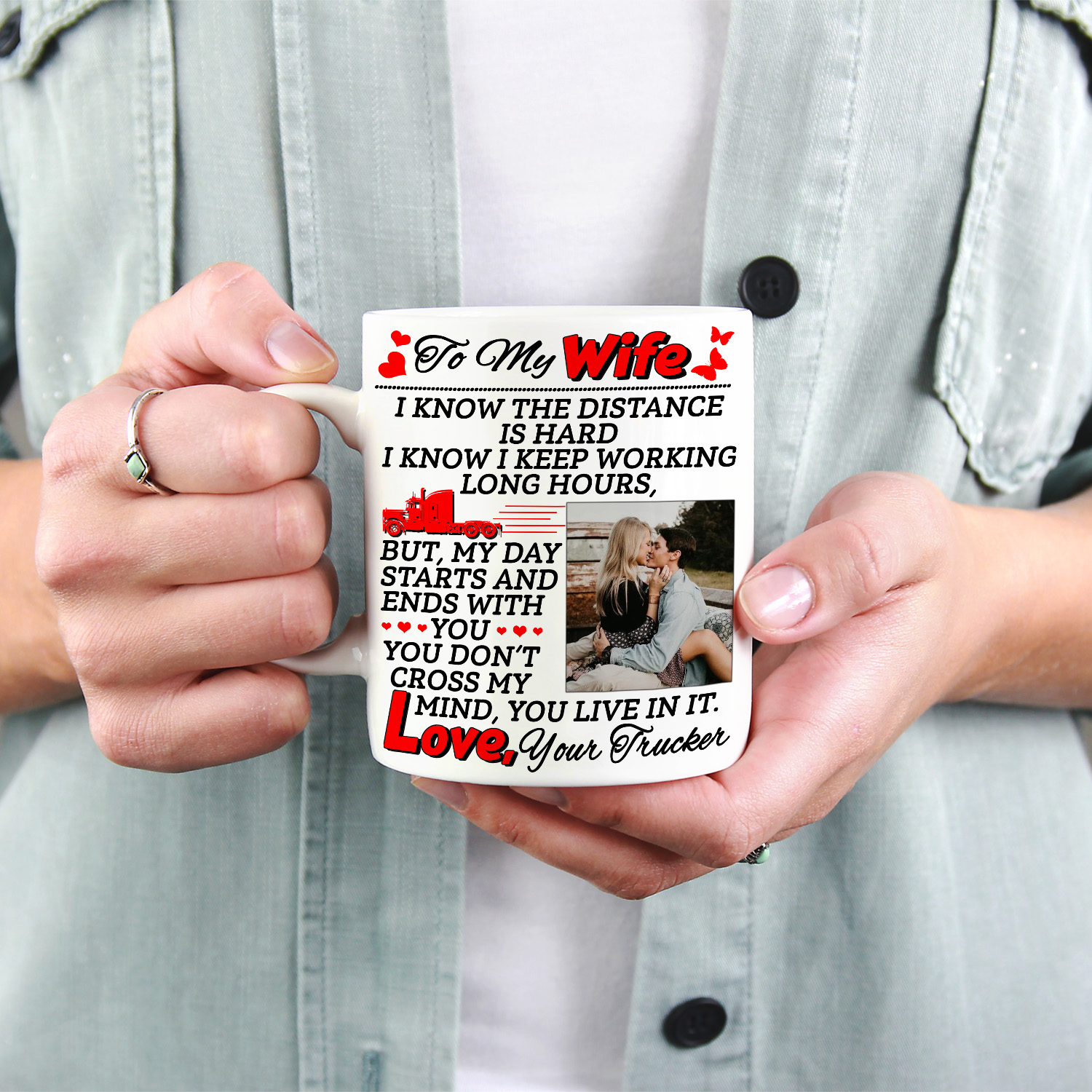 Let’s Shop Personalized Photo Trucker To My Wife I Know the Distance Is Hard I Keep Working Ceramic Coffee Mug!