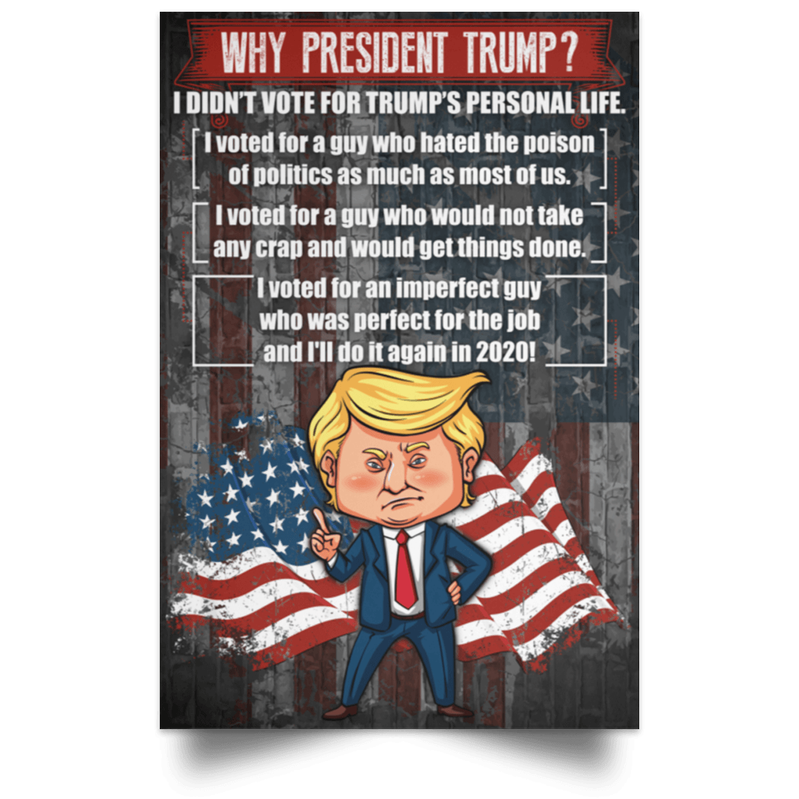 Shop Why President Trump I Vote For An Imperfect Guy Who Was Perfect For The Job Unframed Poster – Trump 2020 Sign.