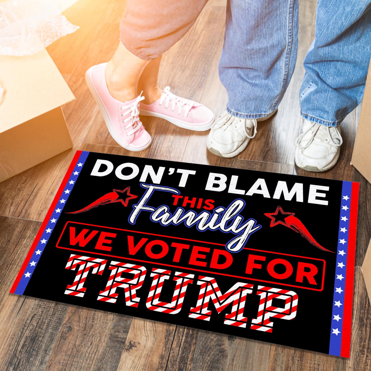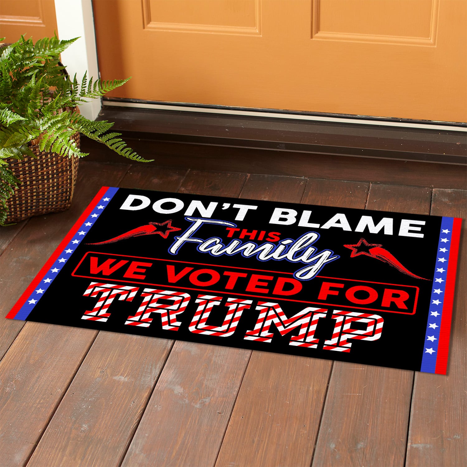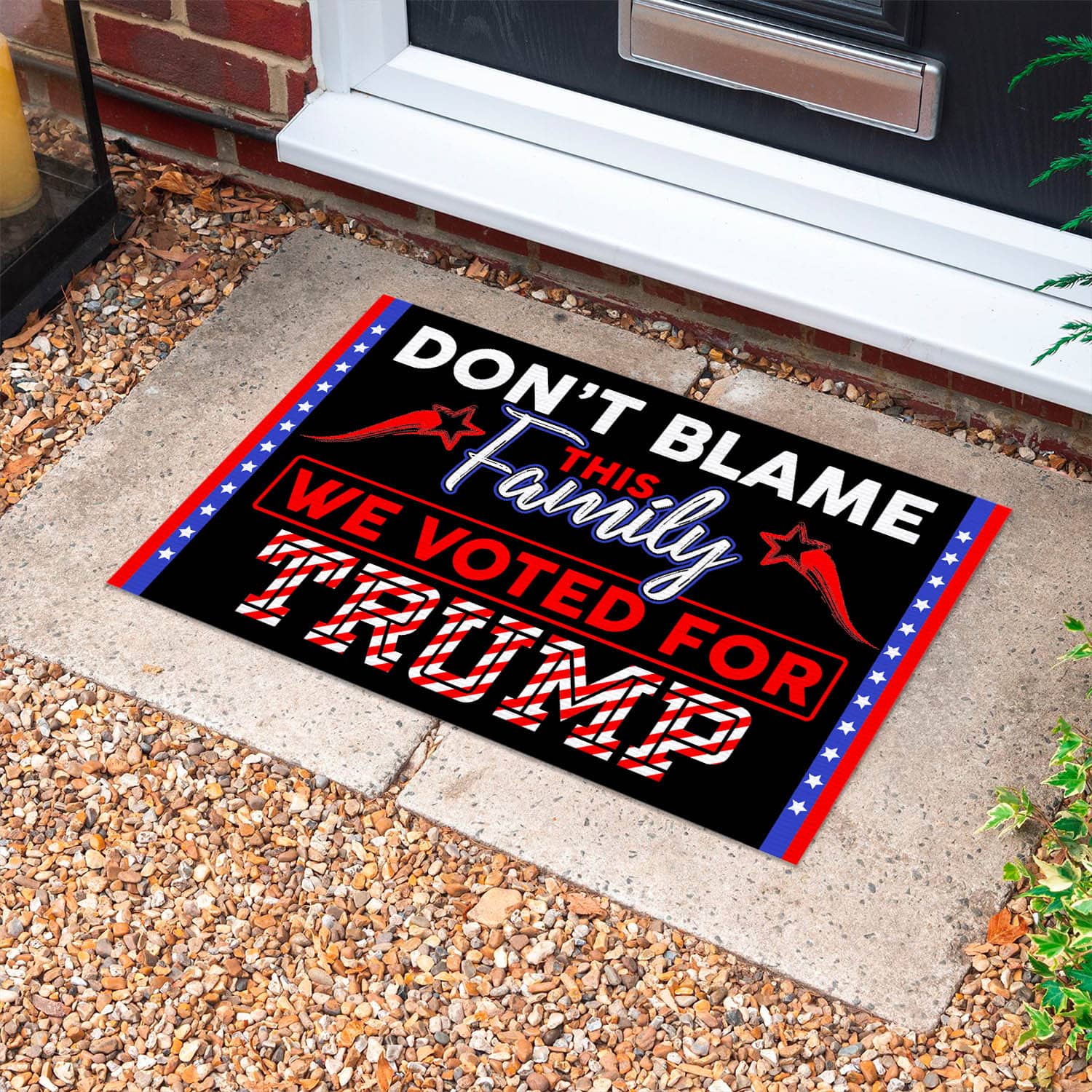 Let’s Shop Don’t Blame This Family We Voted For Trump Doormat – Outdoor Indoor Doormat – Trump Supporter Doormat!