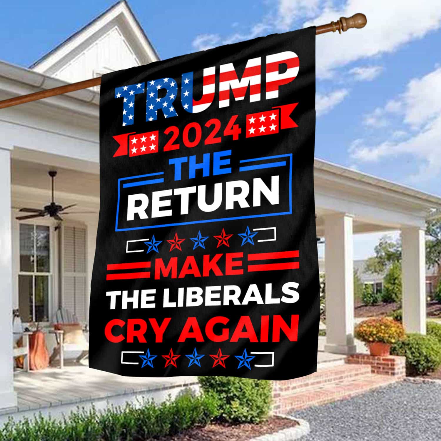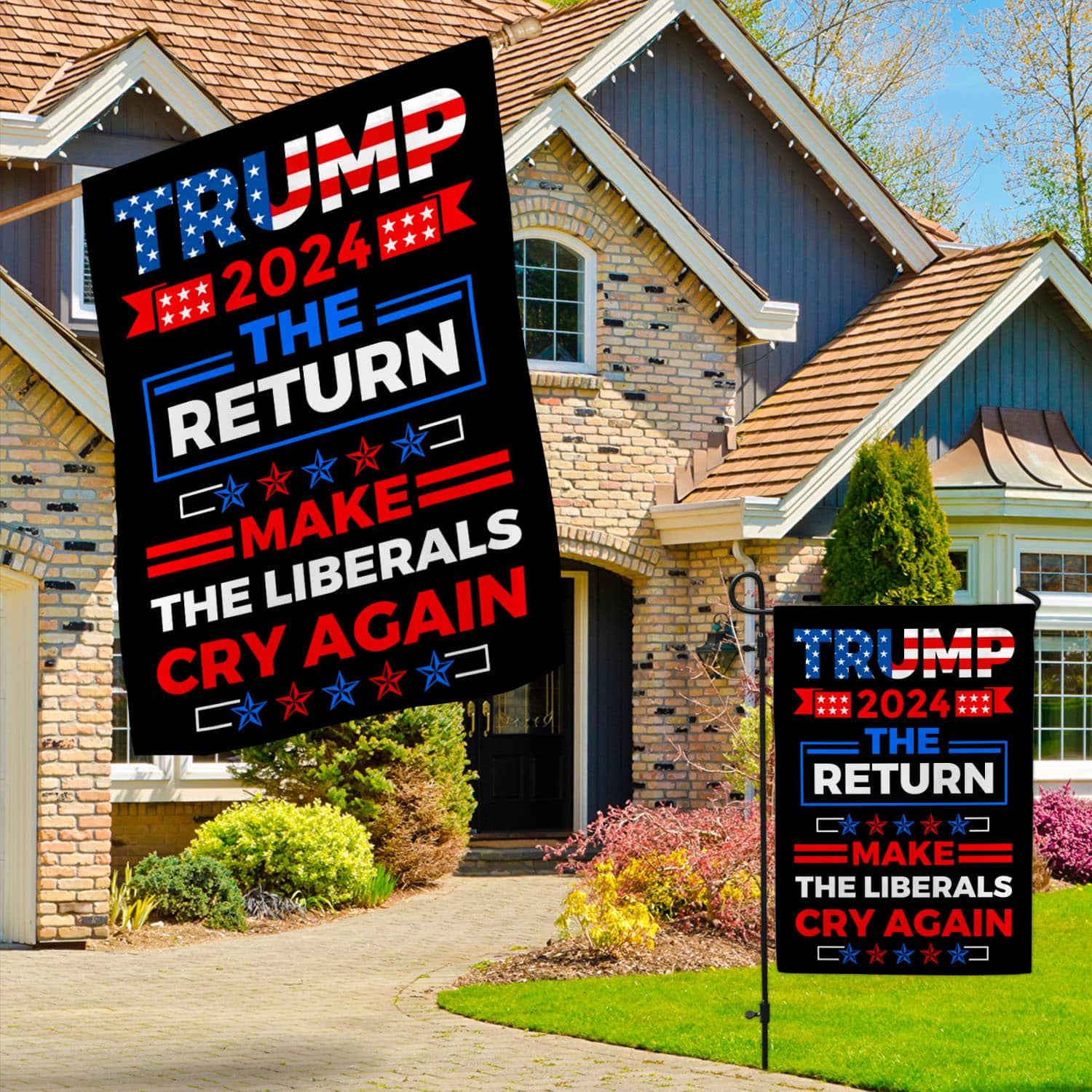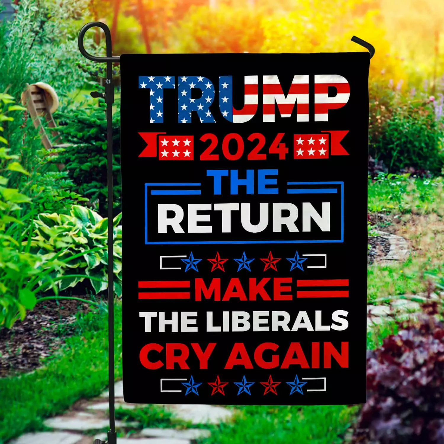 Let’s Shop Trump 2024 The return Make Liberals Cry Again Garden Flag – Trump House Flag – Anti Biden Flag!