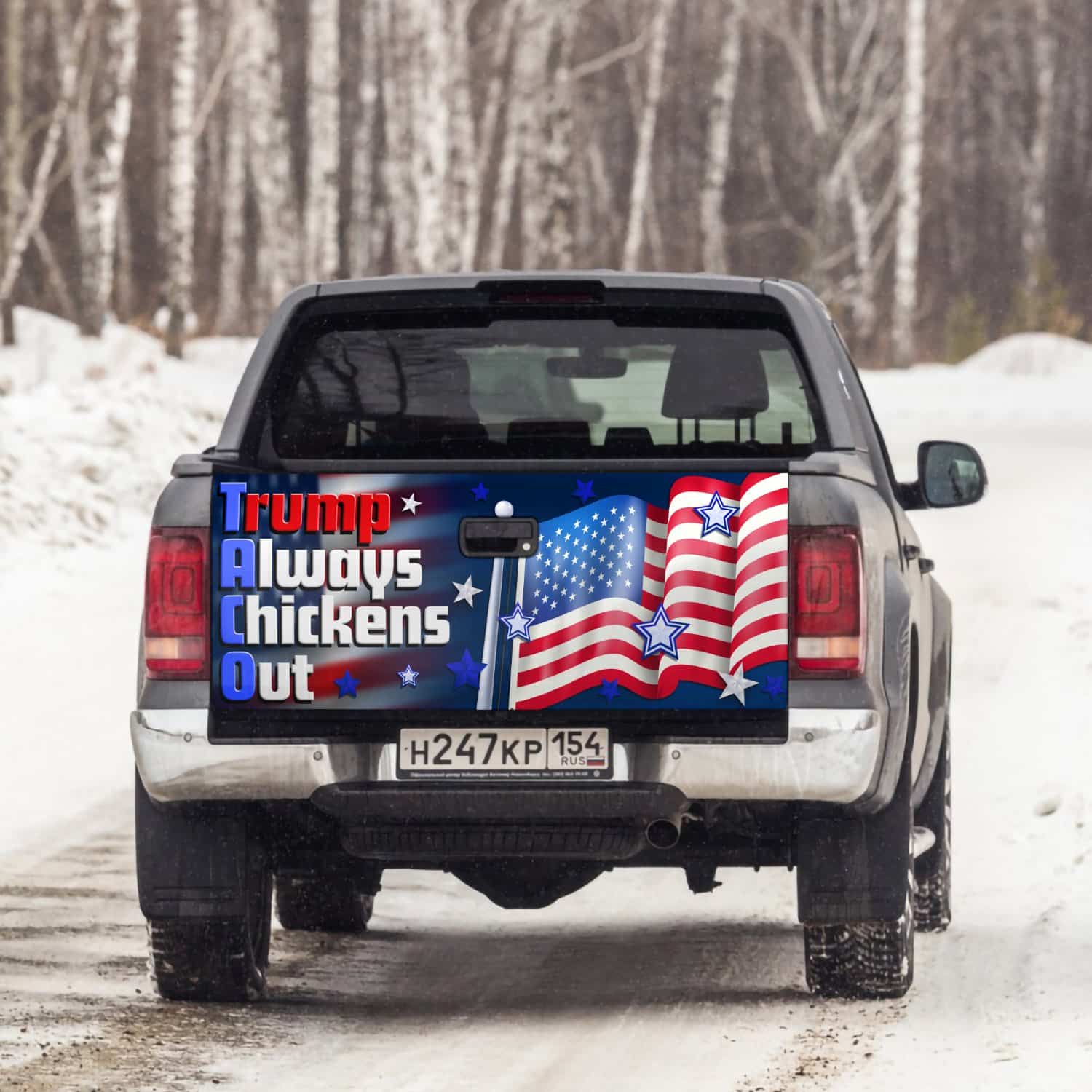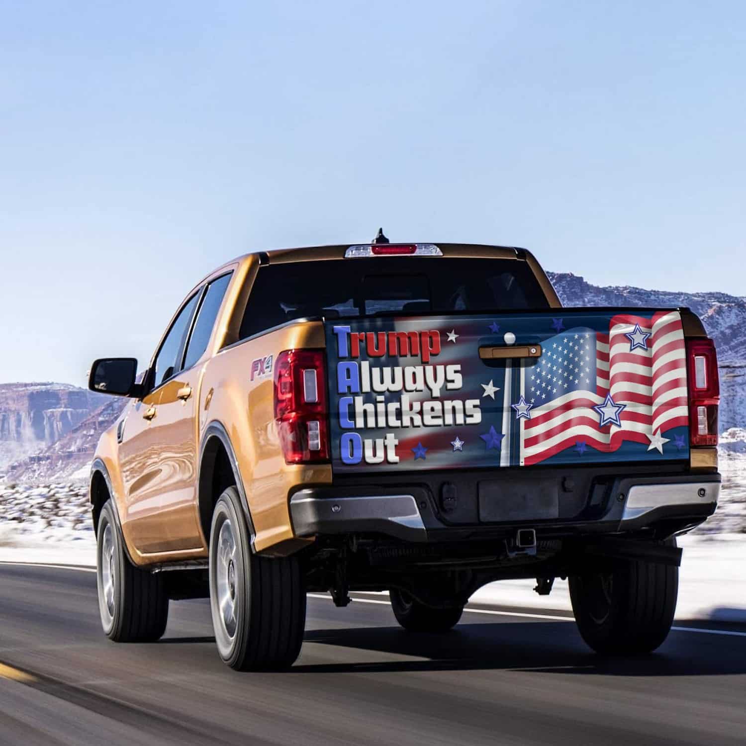At CubeBik, besides truck tailgate decal sticker wrap, we also offer tees, hoodies, sweaters, raglans, tanks, wall arts, canvases, posters, mugs, blankets, engraved jewelry, personalized necklaces, flags, throw pillows, tote bags, hats, accessories and more on our website, so do not miss our other Taco Trump Always Chickens Out, Taco Trump Always Chickens Out T-Shirt, Taco Trump Always Chickens Out Shirt, Let’s Go Taco Bumper Sticker, Let’s Go Taco Tailgate, Taco Trump Bumper Sticker, Let’s Go Taco Shirt, Let’s Go Taco T Shirt. Moreover, all the products are made-to-order and one of a kind custom designs you can’t get elsewhere in normal stores. Let’s discover CubeBik.com now and find your favorite personalized items. We can’t wait to surprise and build beautiful memories with you and your loved ones.