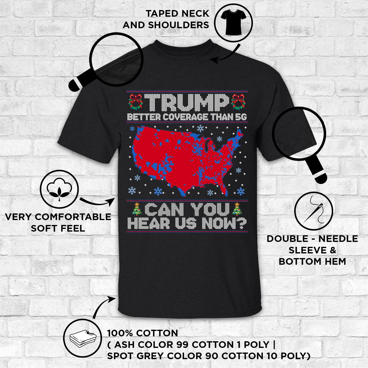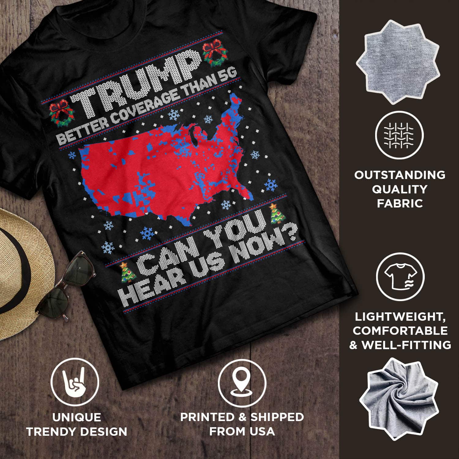 Are you spending too much time to find creative merchandise for you or suitable & special gifts for your mommy, your daddy, your son, your daughter, your children, your friends or someone you love? The struggle is over because we have various Trump Better Coverage Than 5g Christmas Shirt, Trump Better Coverage Than 5g Shirt, Trump Better Coverage Than 5g T-Shirt, Trump Better Coverage Than 5g Can You Hear Us Now Shirt, Trump Has Better Coverage Than 5g Shirt, Funny Trump Christmas Shirt which will make perfect presents for your beloveds. In order to make your present stand out, we have created lots of unique and awesome customized photo gifts & personalized designs.