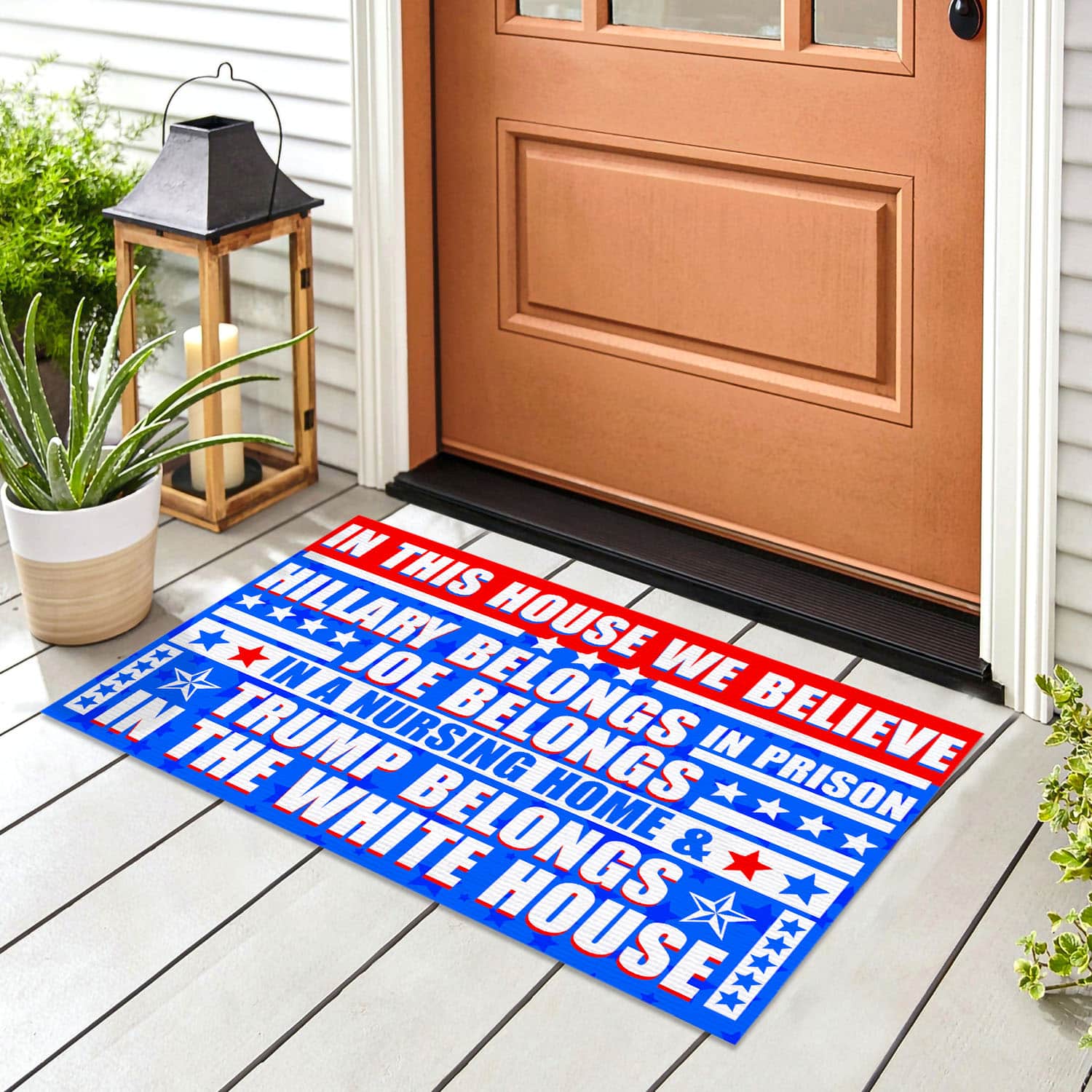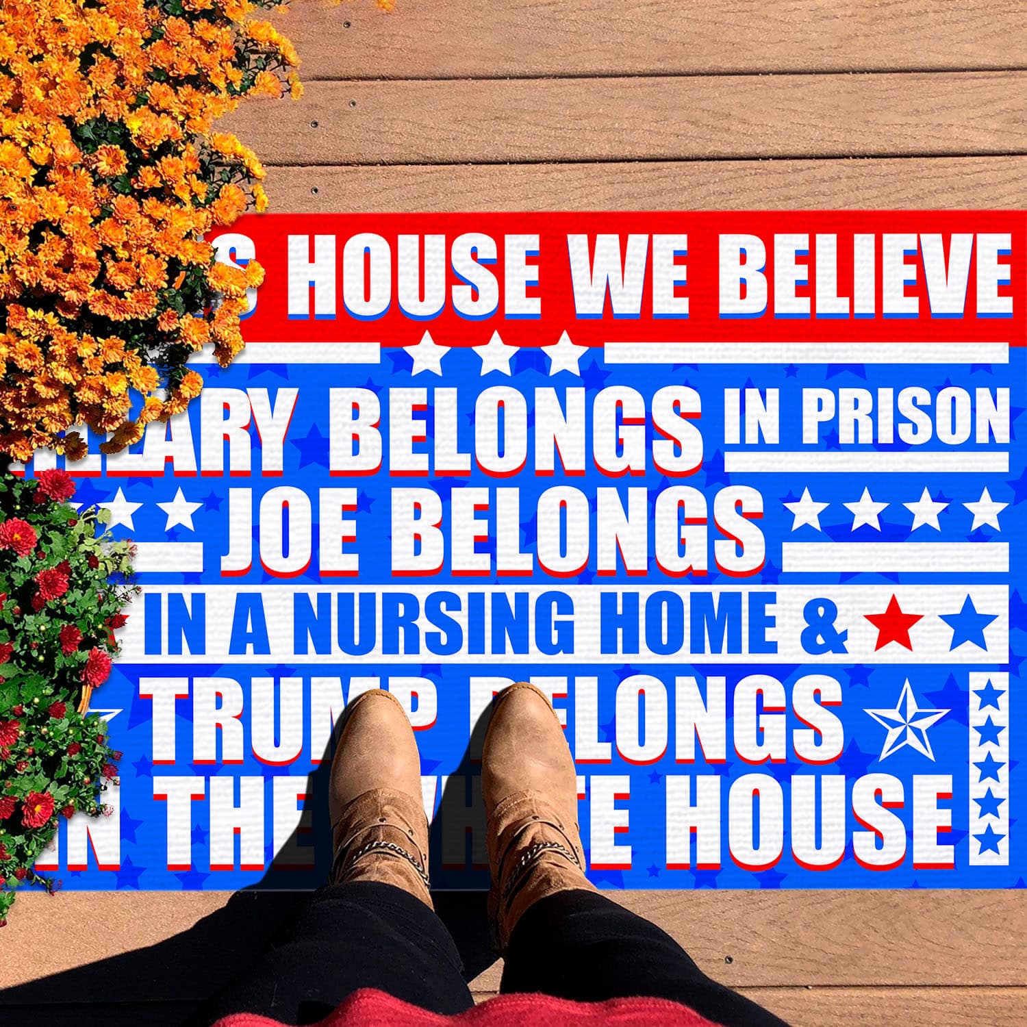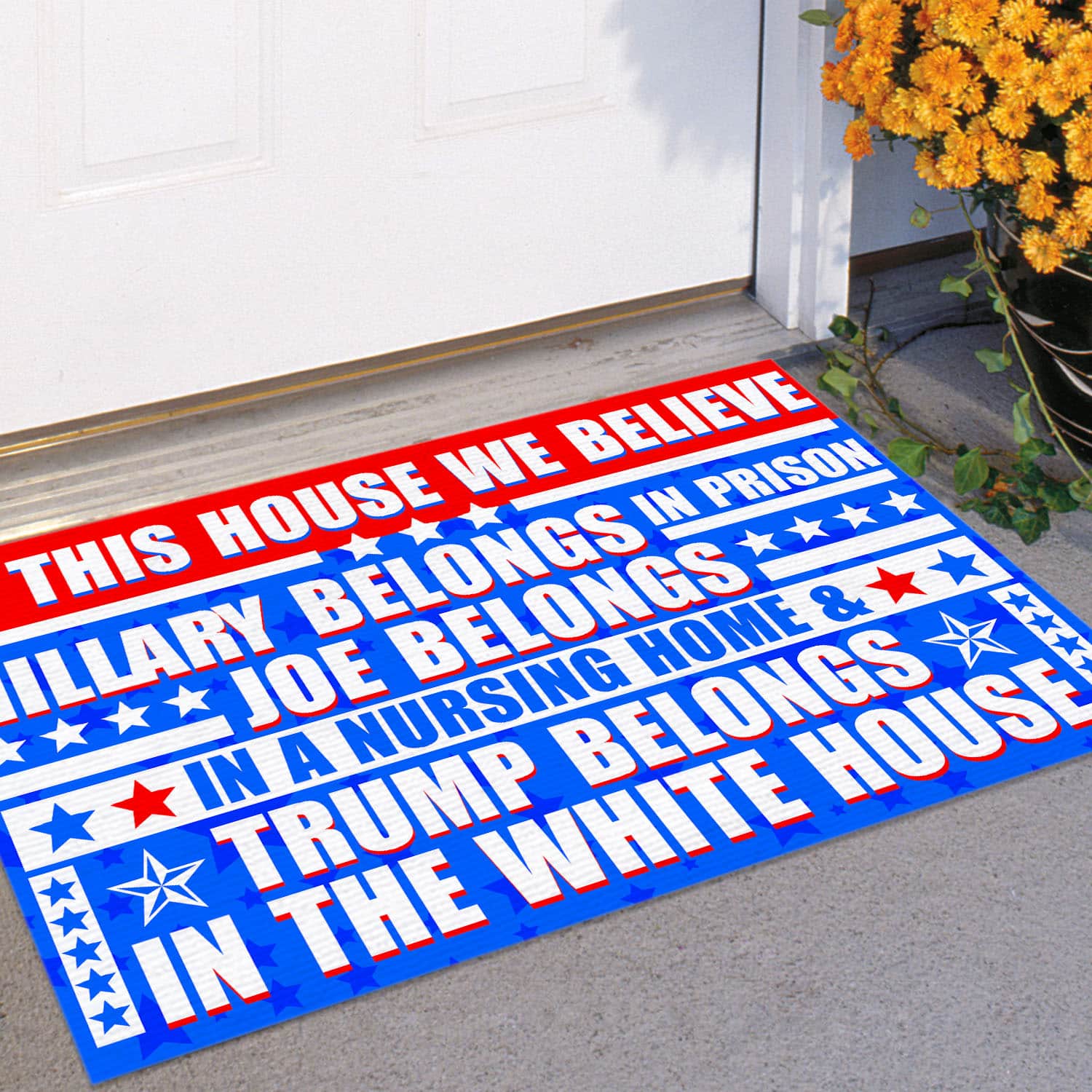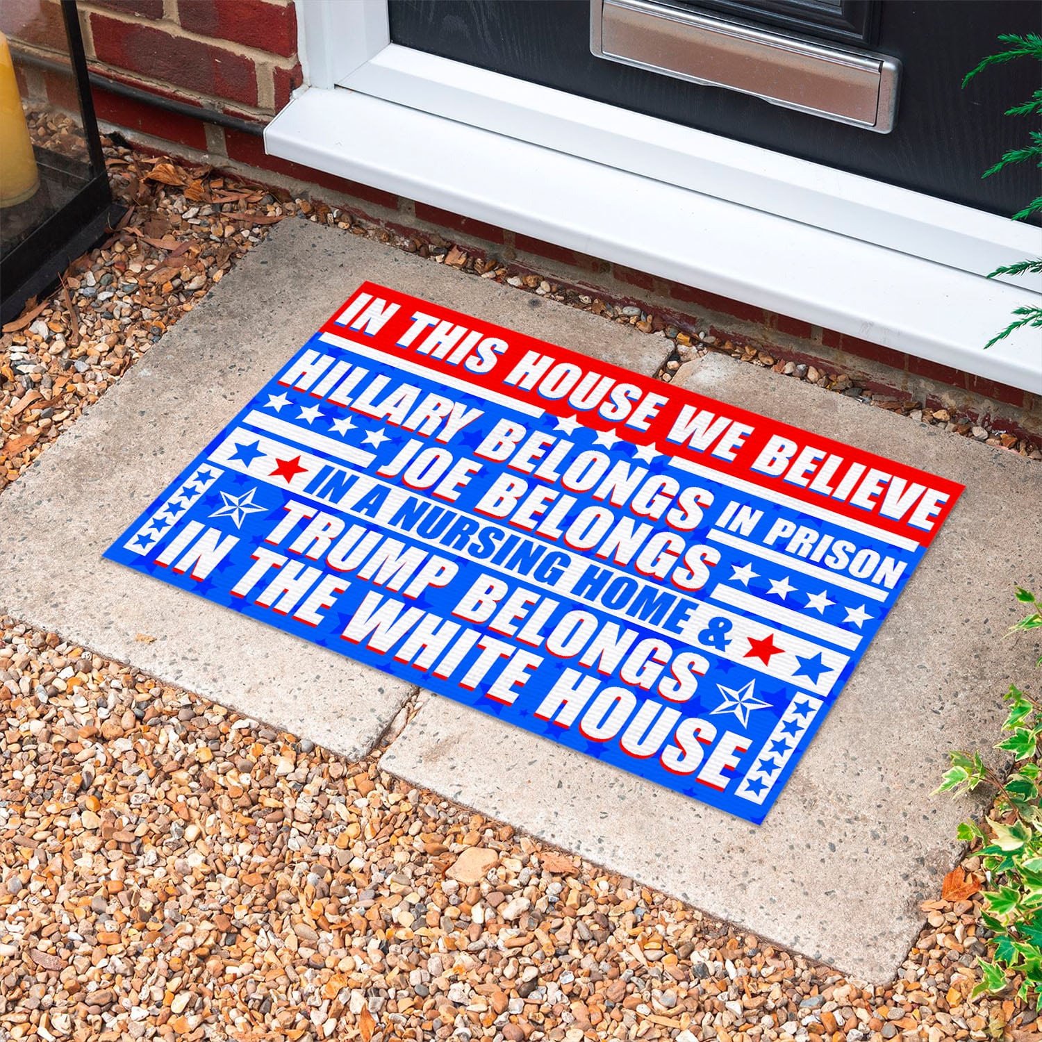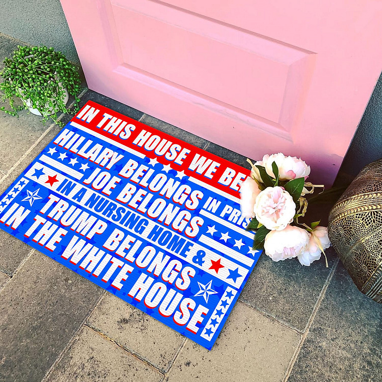 Let’s Shop In This House We Believe Hillary Belongs In Prison Joe Belongs In A Nursing Home House Doormat – Anti Biden Outdoor Doormat!