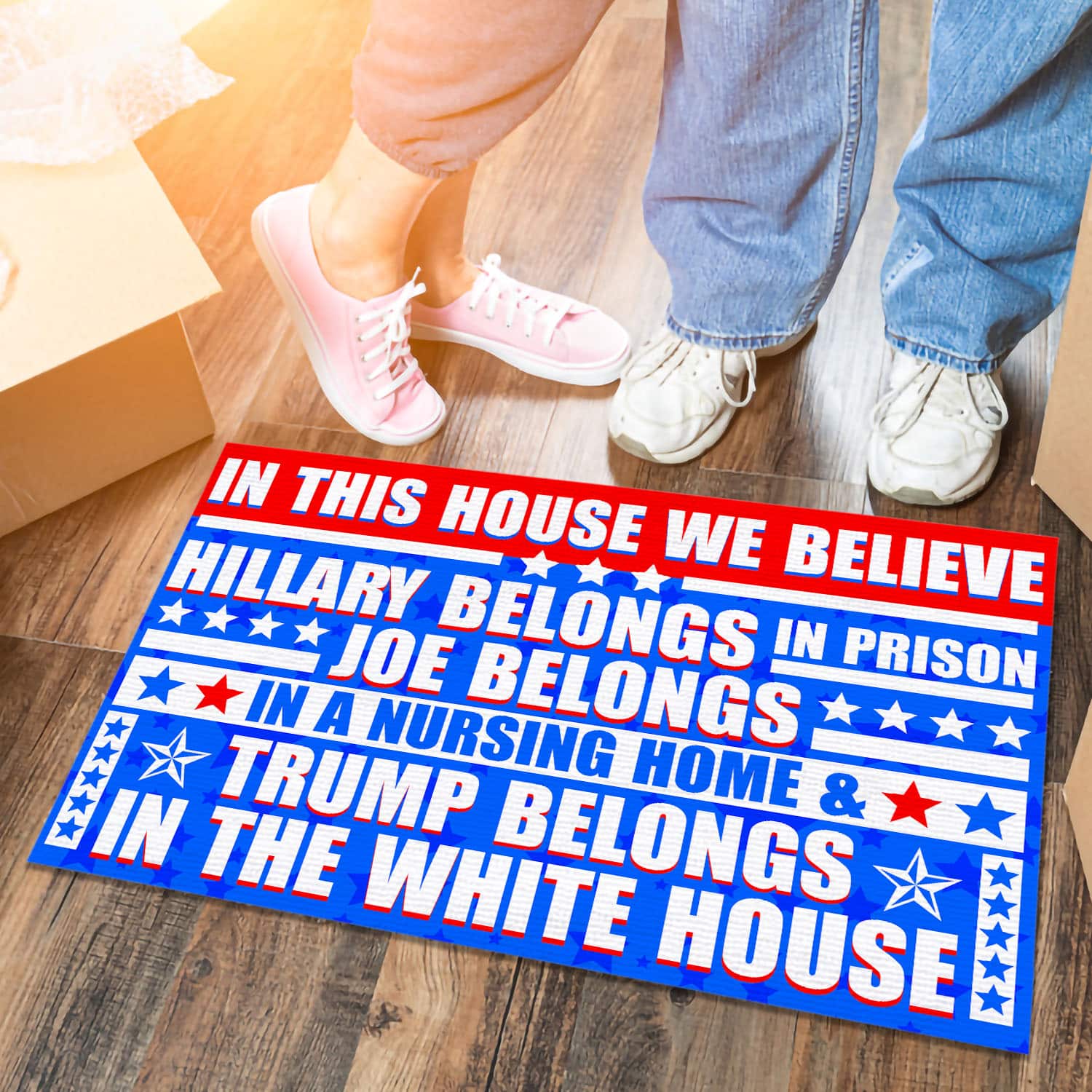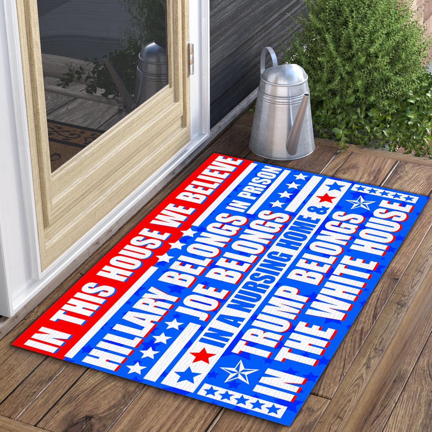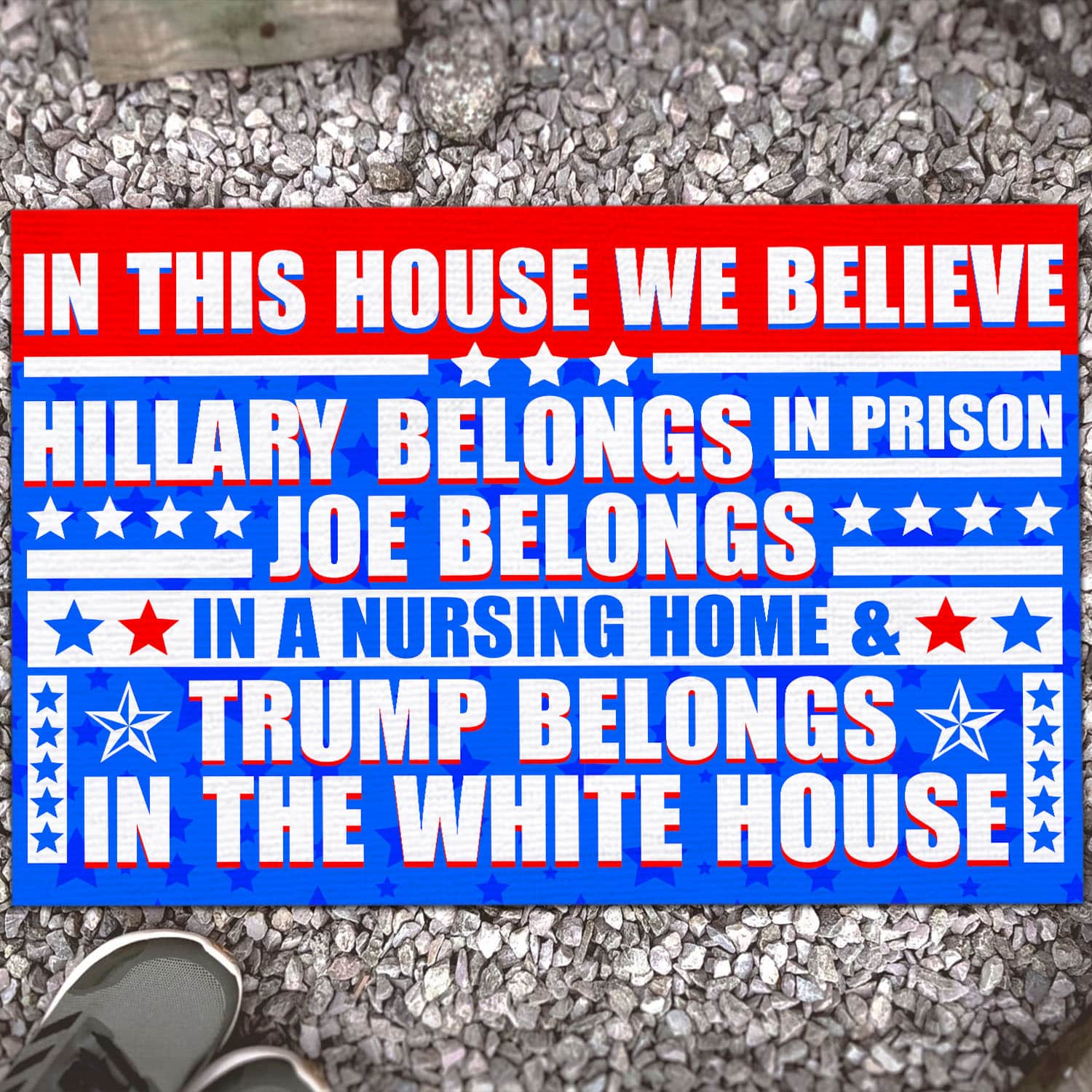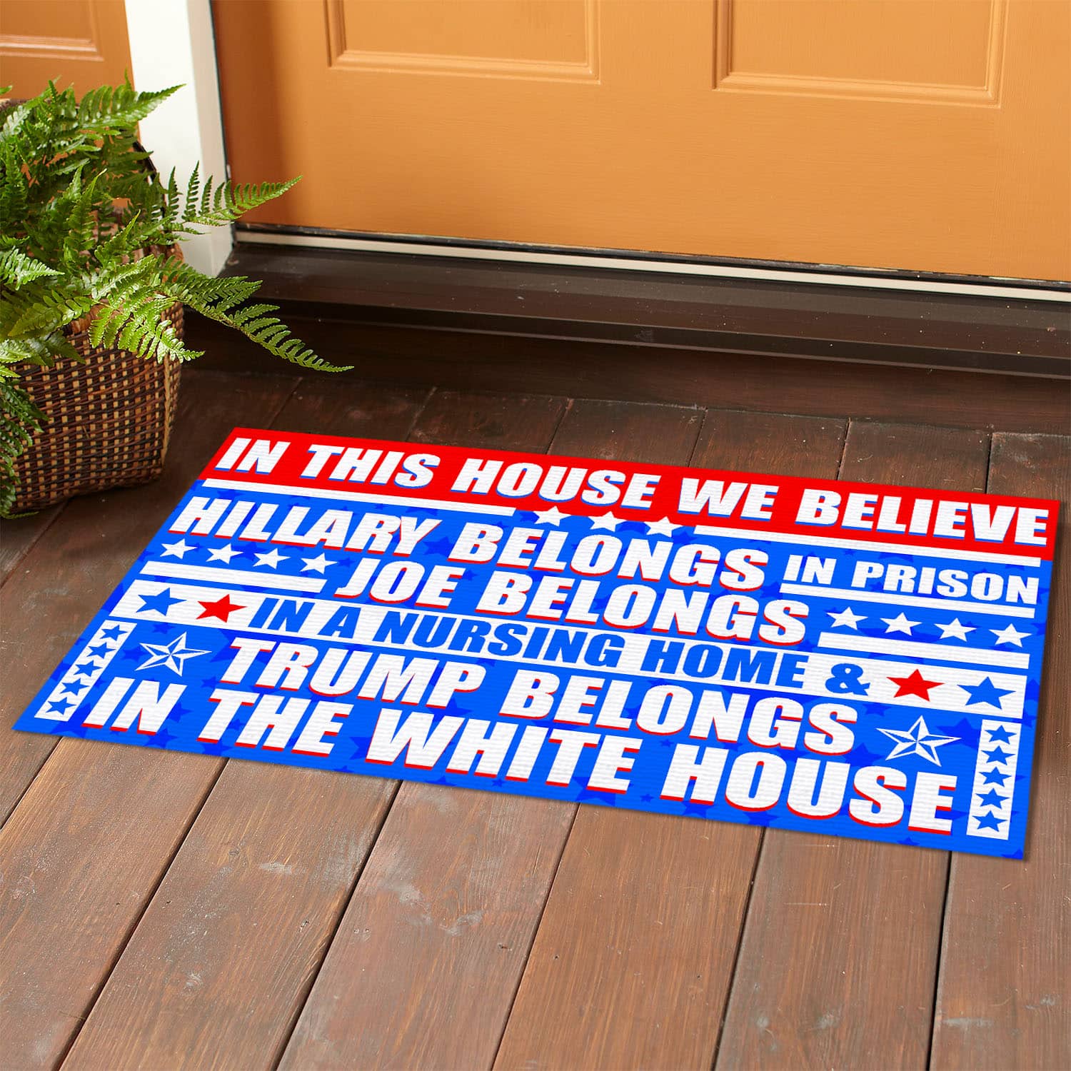 Let’s Shop In This House We Believe Hillary Belongs In Prison Joe Belongs In A Nursing Home House Doormat – Anti Biden Outdoor Doormat!