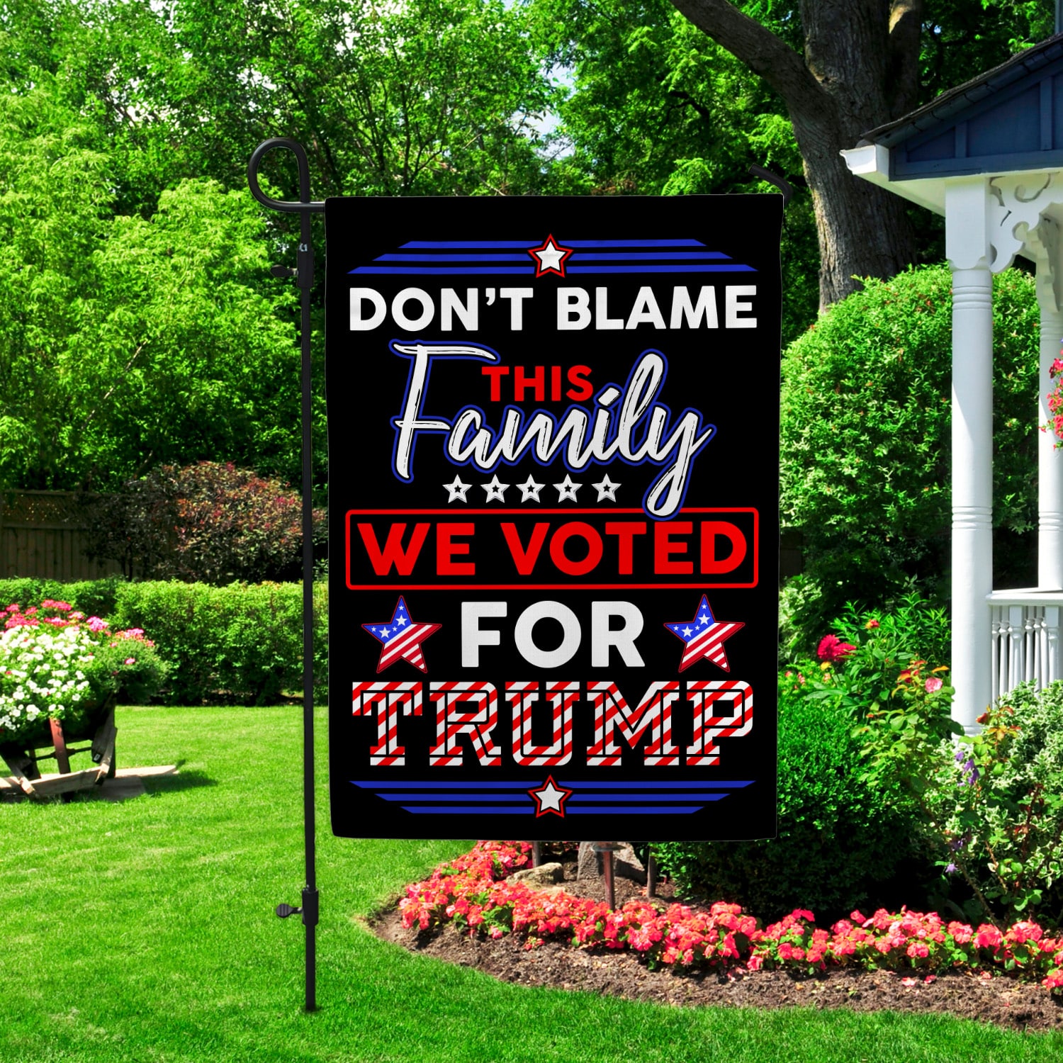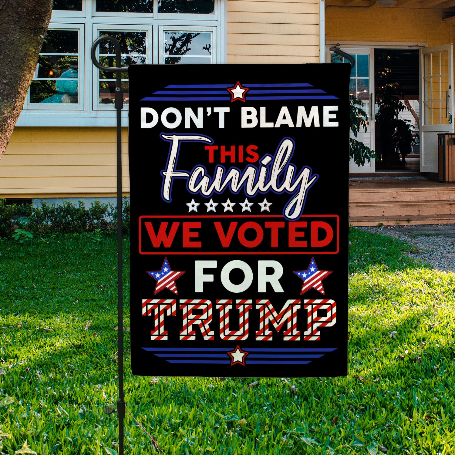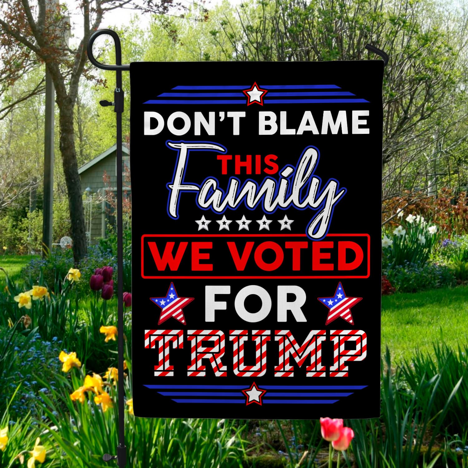 Let’s Shop Don’t Blame This Family We Voted For Trump Decorative Garden Flag – Indoor Outdoor Flag – House Flag – Trump Supporter Flag!