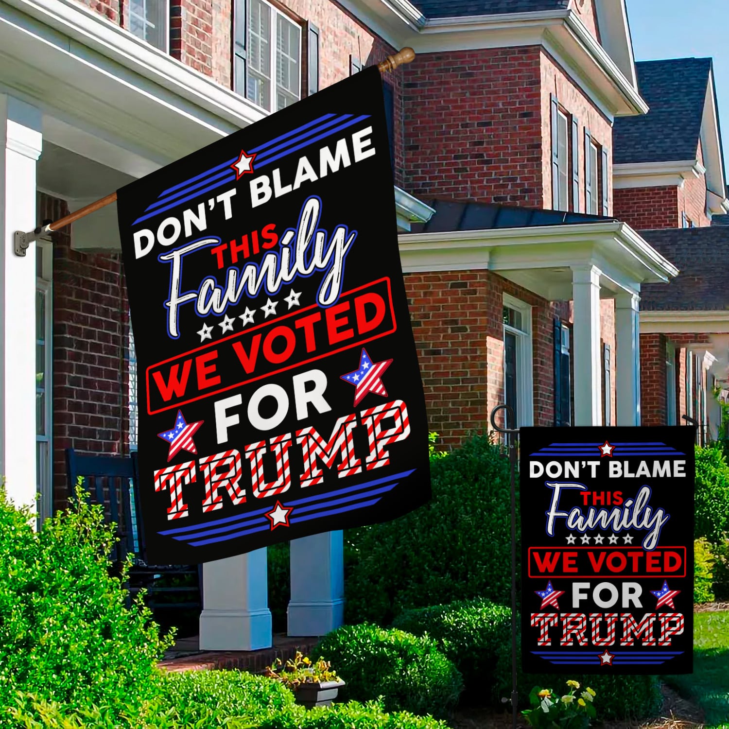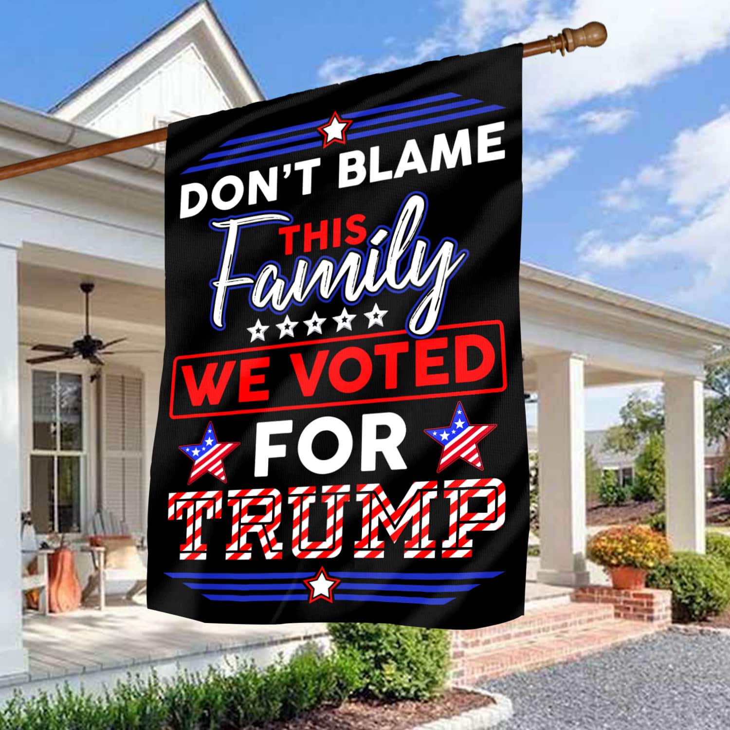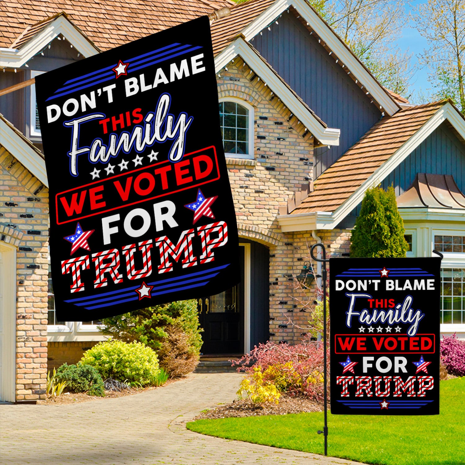 Let’s Shop Don’t Blame This Family We Voted For Trump Decorative Garden Flag – Indoor Outdoor Flag – House Flag – Trump Supporter Flag!