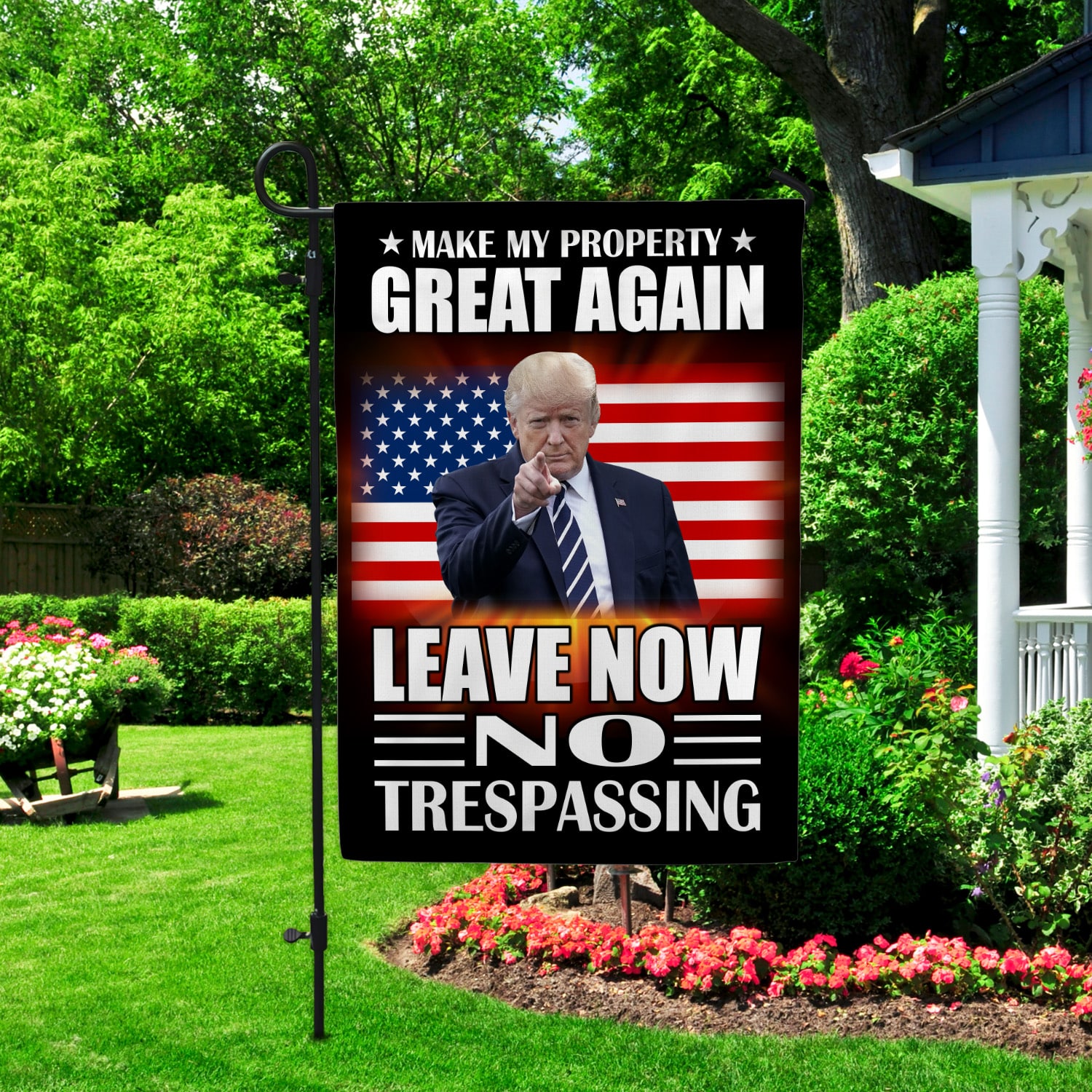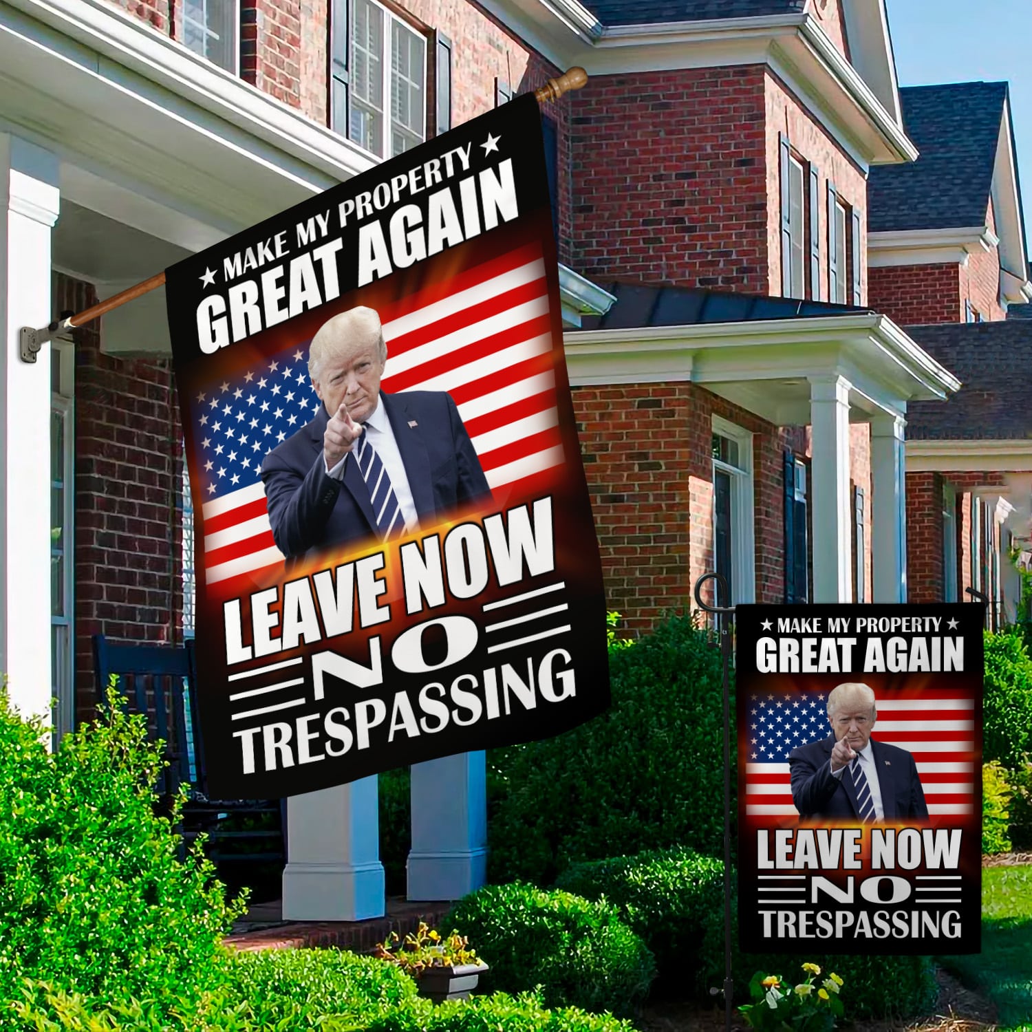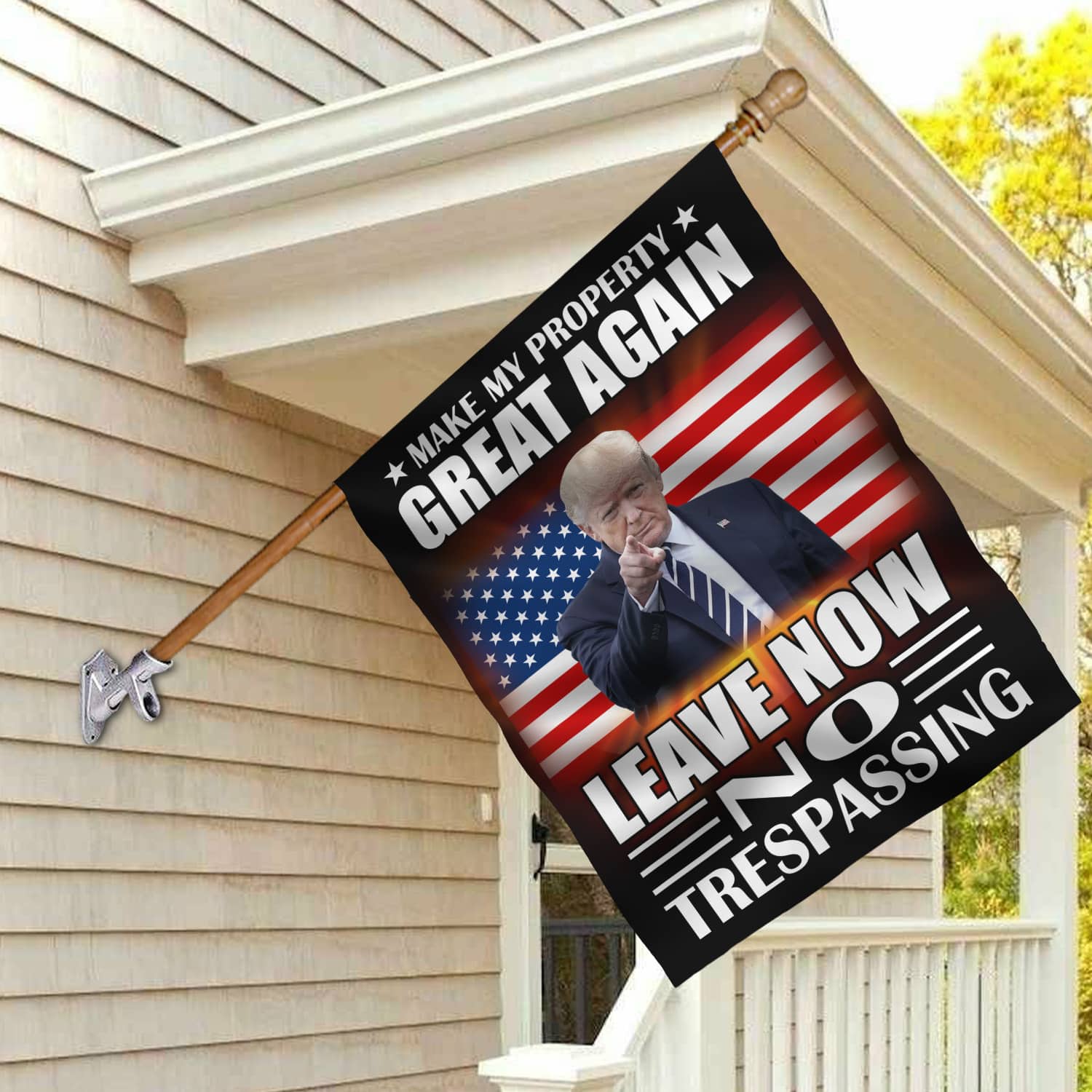 Are you spending too much time to find creative merchandise for you or suitable & special gifts for your mommy, your daddy, your son, your daughter, your children, your friends or someone you love? The struggle is over because we have various Make My Property Great Again Flag, Pro Trump Flag, Trump Make My Property Great Again Flag, Make My Property Great Again Leave Now No Trespassing Trump Flag which will make perfect presents for your beloveds. In order to make your present stand out, we have created lots of unique and awesome customized photo gifts & personalized designs.