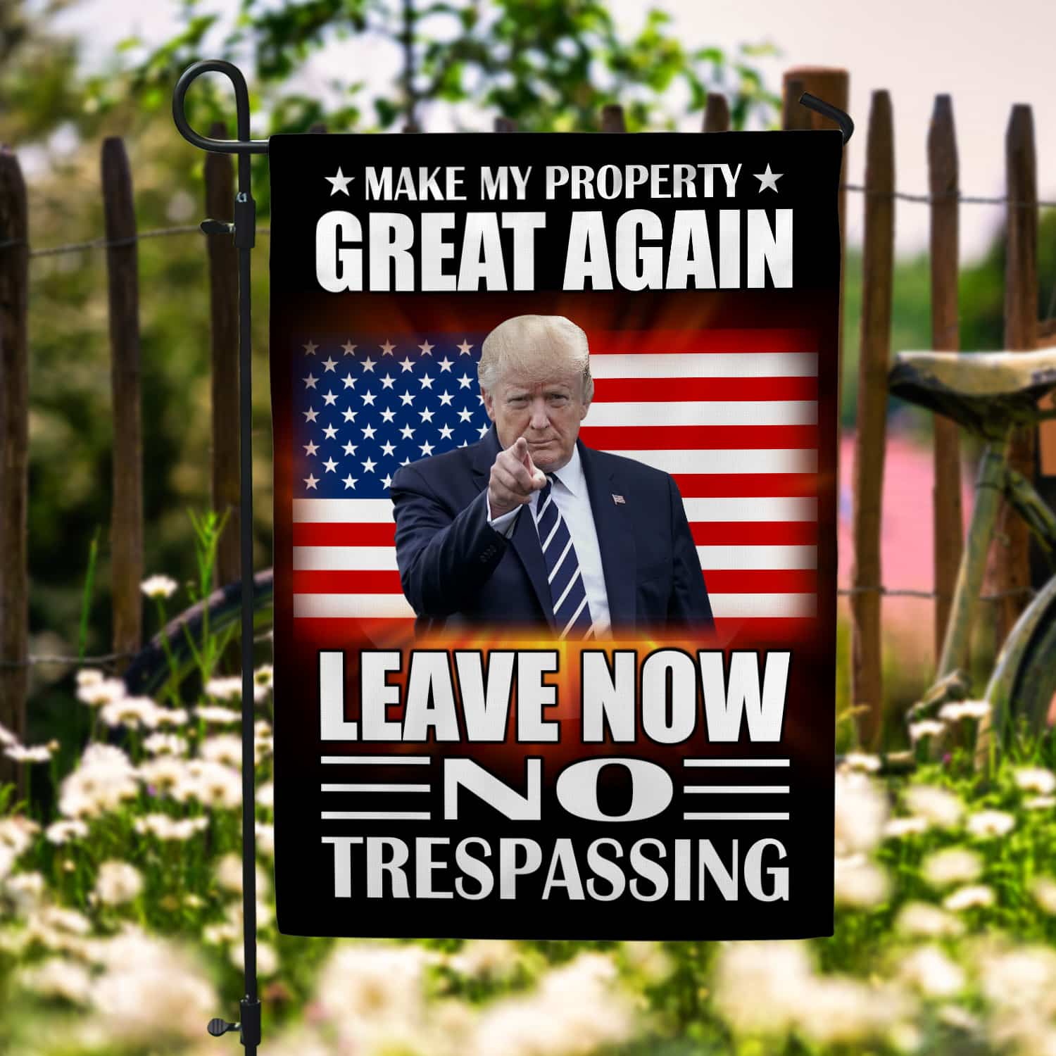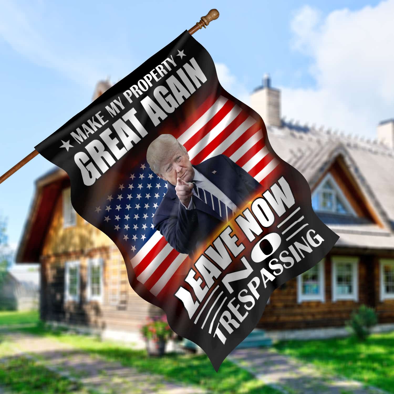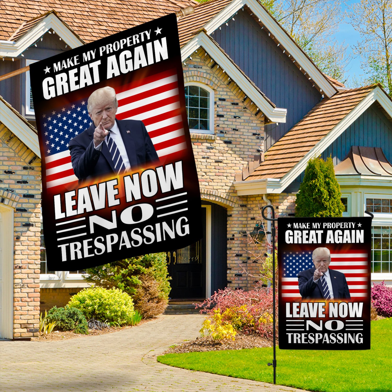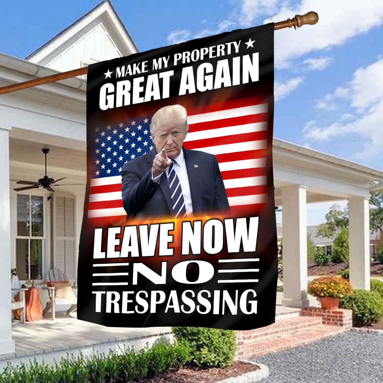 Are you spending too much time to find creative merchandise for you or suitable & special gifts for your mommy, your daddy, your son, your daughter, your children, your friends or someone you love? The struggle is over because we have various Make My Property Great Again Flag, Pro Trump Flag, Trump Make My Property Great Again Flag, Make My Property Great Again Leave Now No Trespassing Trump Flag which will make perfect presents for your beloveds. In order to make your present stand out, we have created lots of unique and awesome customized photo gifts & personalized designs.
