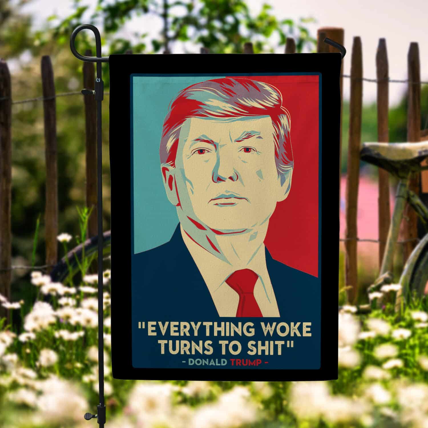 Let’s Shop Trump Everything Woke Turns To Shit Garden Flag – Funny Political House Flag – Wall Flag!