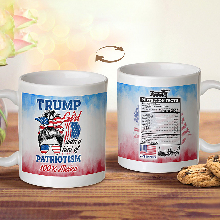 Let’s Shop Nutrition Facts Trump Girl With A Hint Of Patriotism Coffee Mug – Trump Train Travel Bottle!